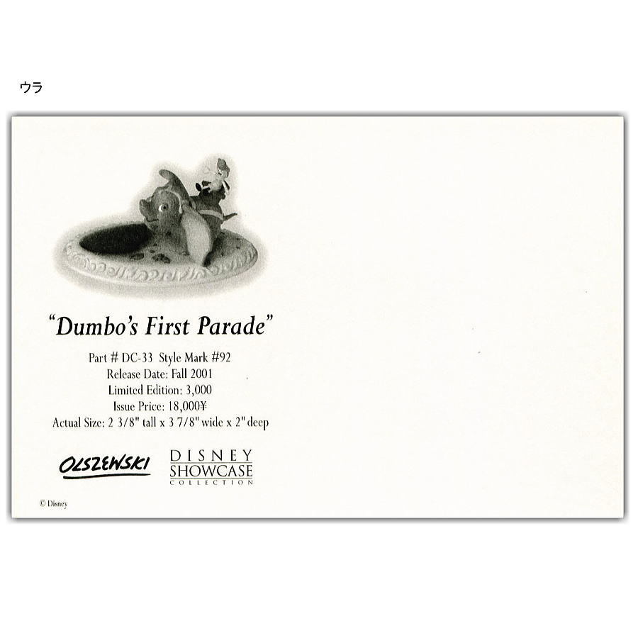 | 商品説明 | ダンボ オルショウスキーファイル入ポストカード カードは6枚(3種類各2枚) オルショウスキー カード:15.2×10.2cm ファイル:16×11.8cm 12ポケット ファイルはビニール製 新品 3種類のポストカードが各2枚ファイルされています。 ファイルは簡易的なファイルですのでご了解の上ご注文ください。 ミニチュア・フィギュア作家のOLSZEWSKI(オルショウスキー)がディズニー作品の代表的なシーンをブロンズ製ミニチュア・フィギュアで2003年から2005年頃にリリースしました。 |