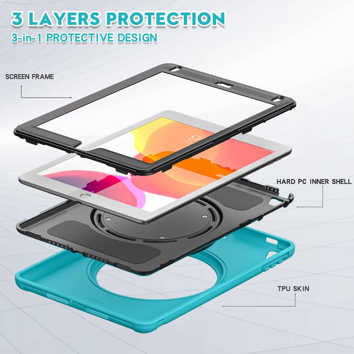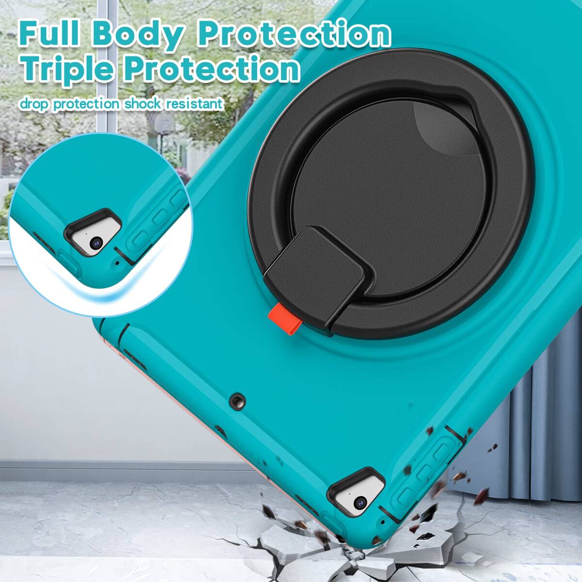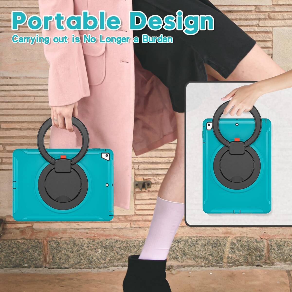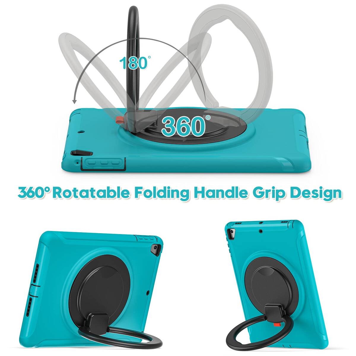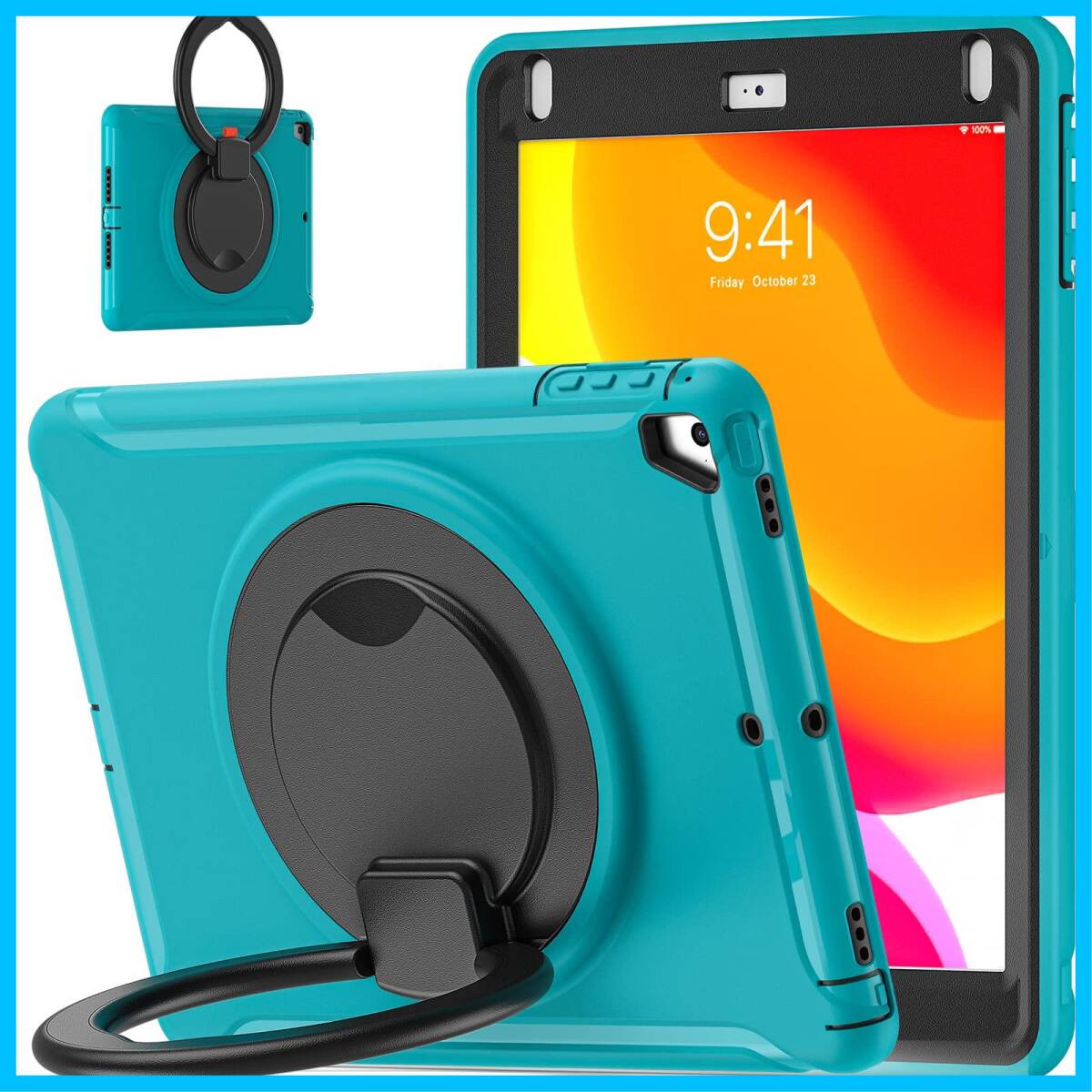 iPad6 iPad5 ケース iPad 2018 第6世代 2017 第5世代 ケース リング付き 衝撃吸収 軽い 頑丈 360°回転スタンド 多方向 ハンドル付 iPad Air2 Pro9.7 カバー 落下防止 キズ防止 キッズ アイパッド9.7 ケース, ブルー