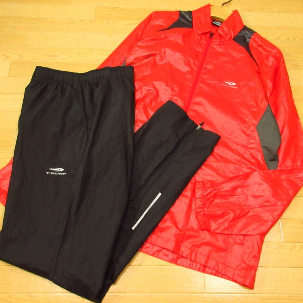 ◎美品!TIGORA ティゴラ M 上下セット ウィンドブレーカー ジャケット&テーパードパンツ メンズ 赤x黒◆BA3717