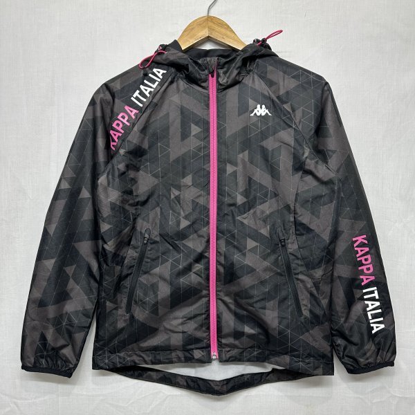 〇Kappa カッパ ロング スリーブ 長袖 フル ジップアップ ジャケット ジャージ スポーツ トレーニング ランニング ウェア S ブラック