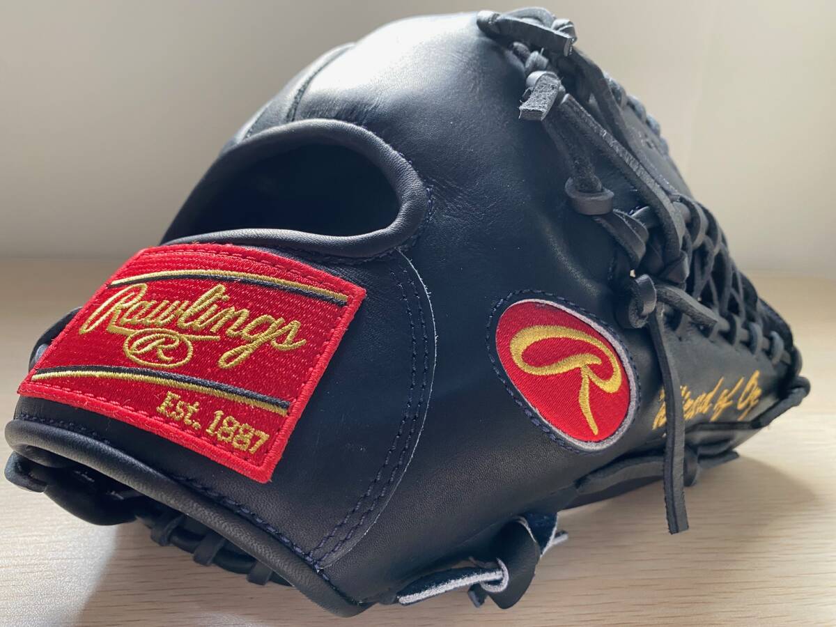注文して約半年待ちでようやく仕上がって来ました。色はネイビーで、ローリングスでは定番のタン・ブラック以外のカラーを選択するならば、経験上この色が最もしっとりした良い革質かなと思っています。親指の刺繍は個人名ではなく、Wizard of Oz(オズの魔法使い)とゴールドで入れています。オーダー価格39,600円の半値以下で出品させていただきます。使うもよし、飾るもよし、往年のローリングスを是非ご検討下さい。尚、新品ではありますが、グラブの性質上皮革特有のシワや色ムラは当然ございますので、以上記載の事柄を含め十分にご理解ご納得頂ける方のみご入札下さい。ノークレームノーリターン厳守にてよろしくお願いいたします。※ヤフオクも匿名性が高くなるにつれ、マイペースな方の落札が増えました。オークション終了時点では既に発送の準備は済ませておりますので、速やかなお取引をお願いいたします。