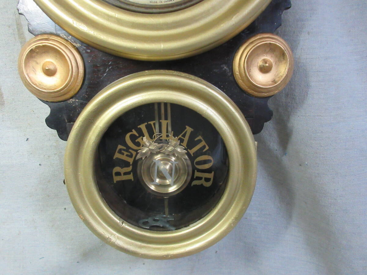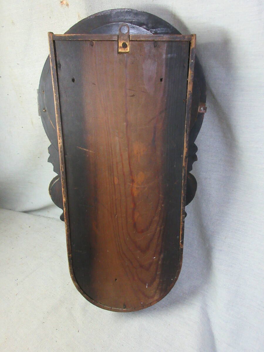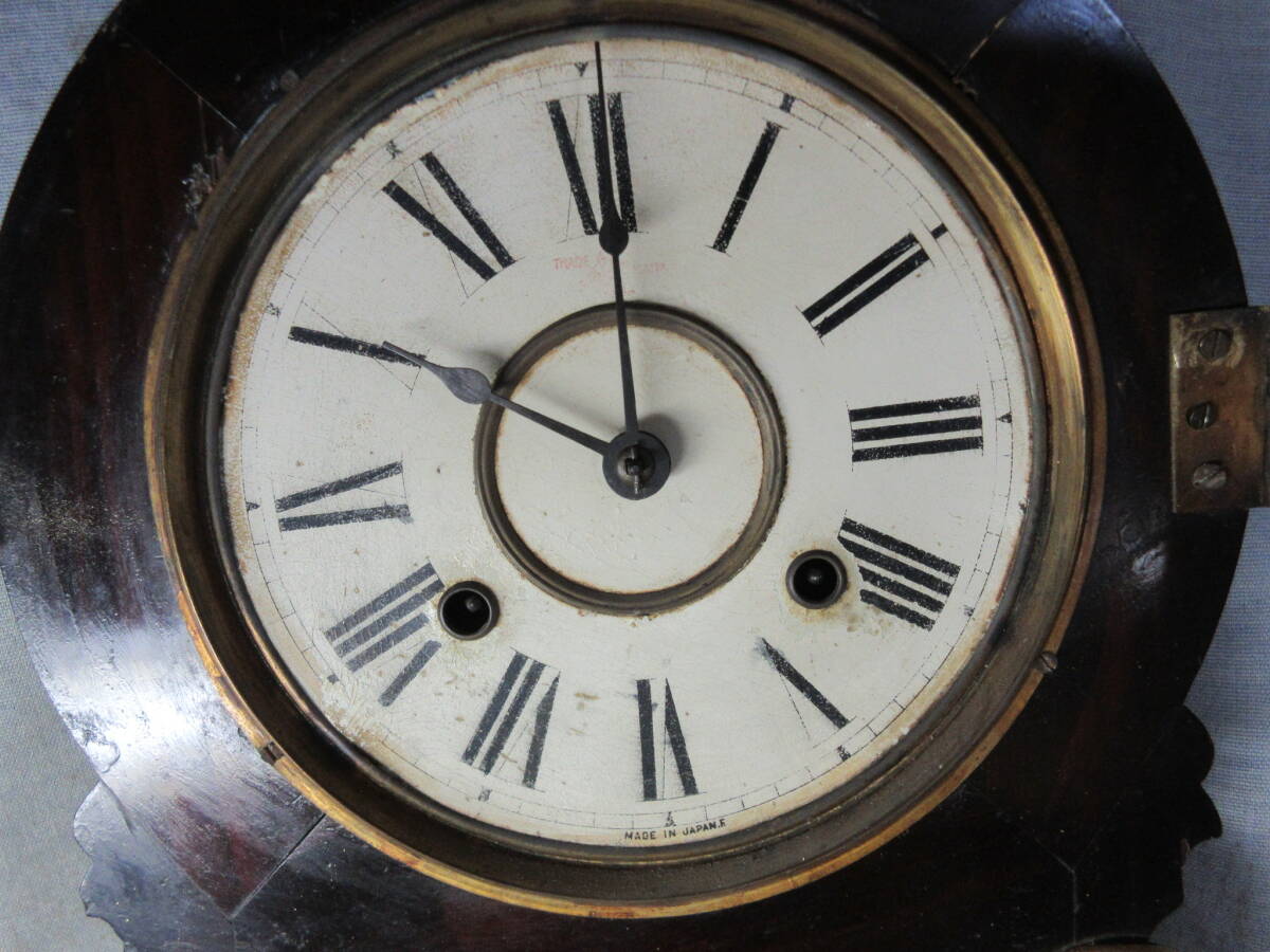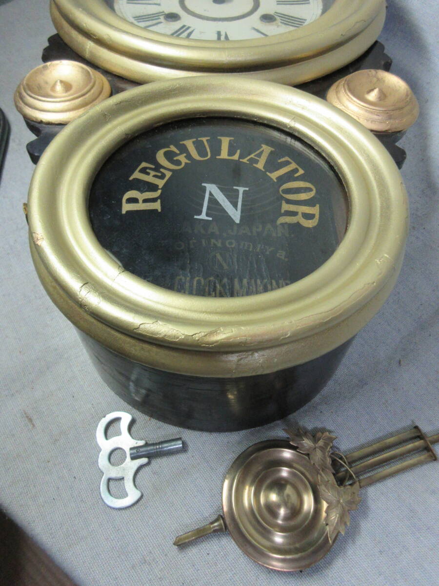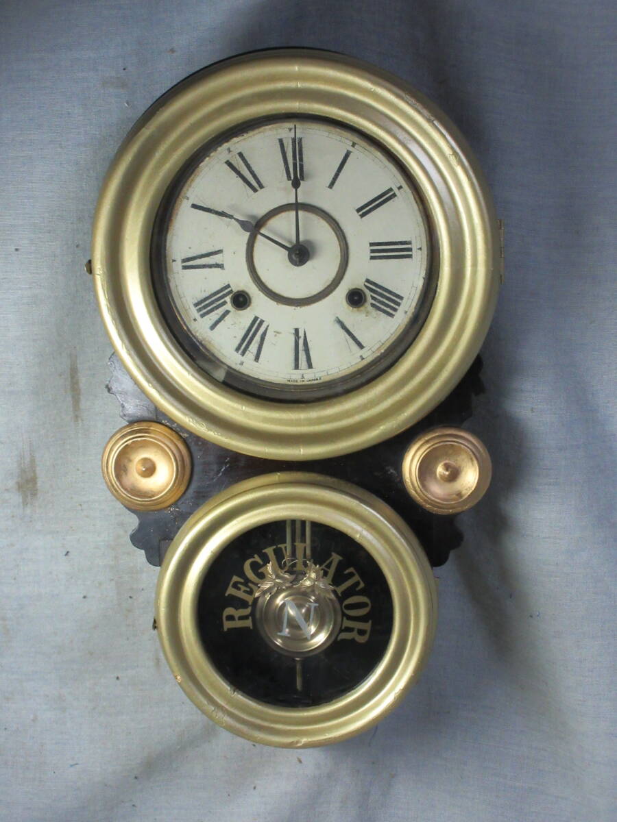 全長 49.5㎝、幅 28.0㎝、奥行 10.5㎝、明治時代、ペイント文字盤(オリジナル)、8日巻、カギ付き、前面の金は上塗りしてあります、上ガラスは変っていますが下ガラスはオリジナルです、機械は動いていたので注油のみです。