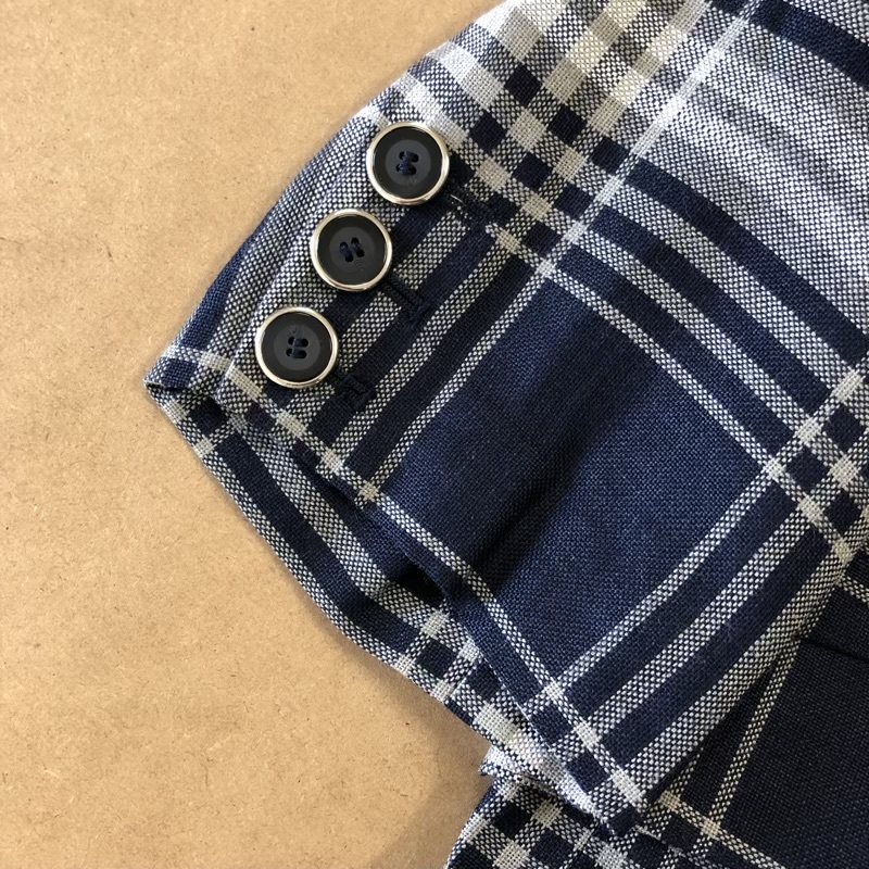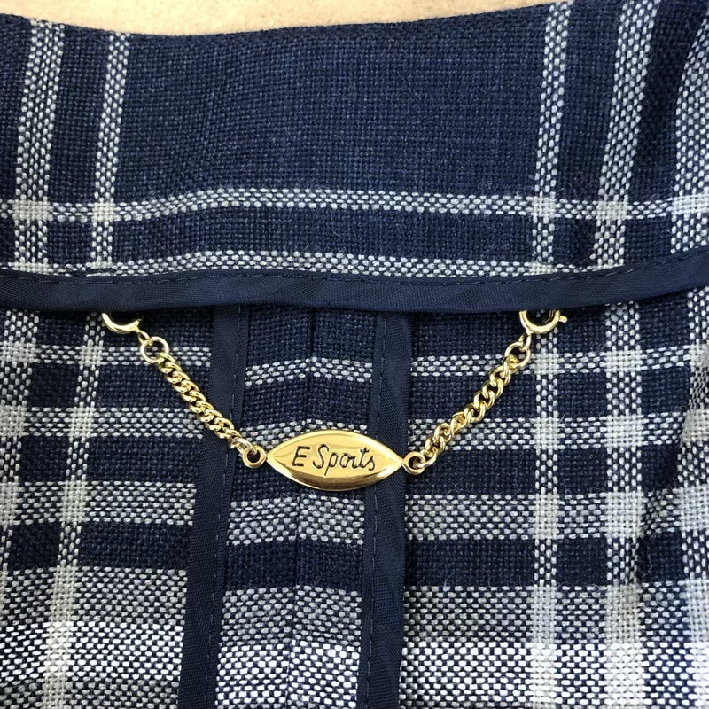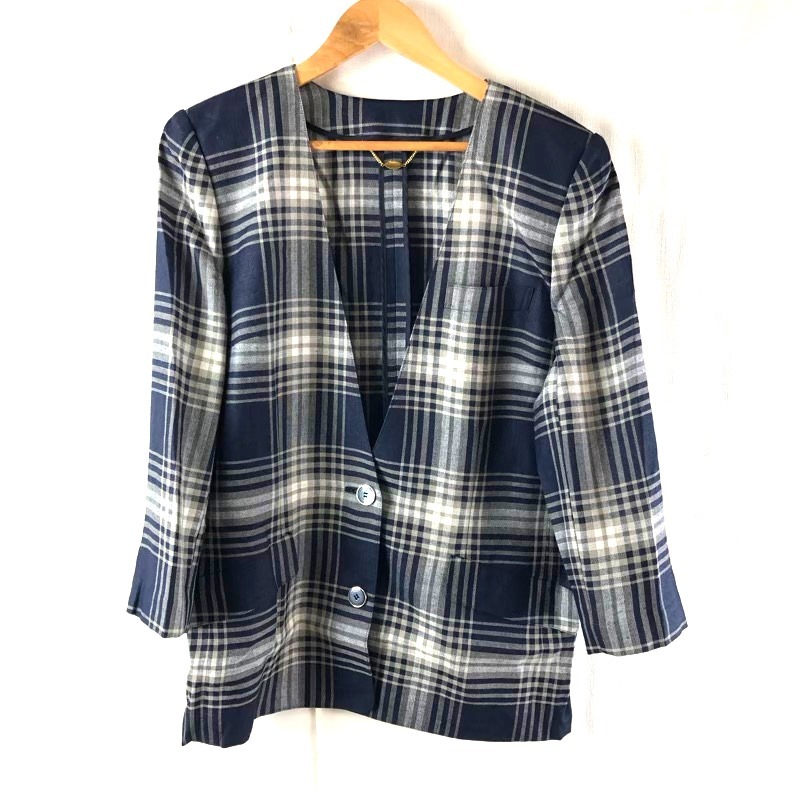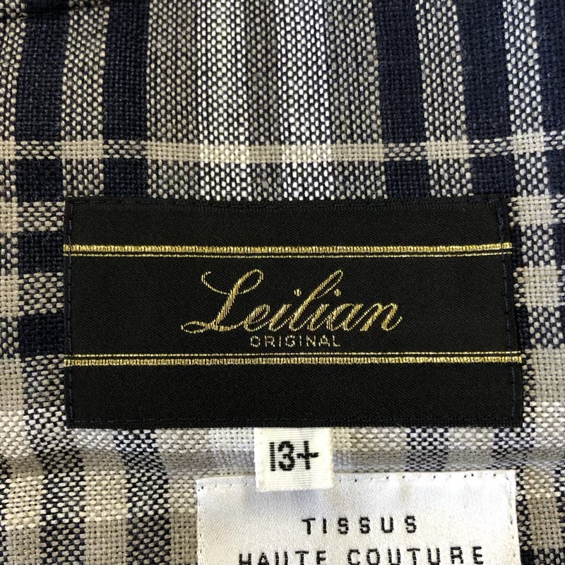 商品名 | レリアン leilian ジャケット シングルボタン 袖ボタン チェック サイドポケット 肩パット チャーム付き 紺 13+サイズ 964780 |