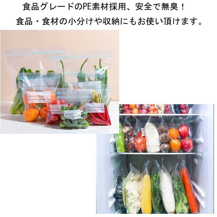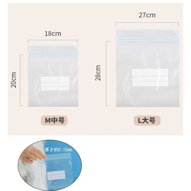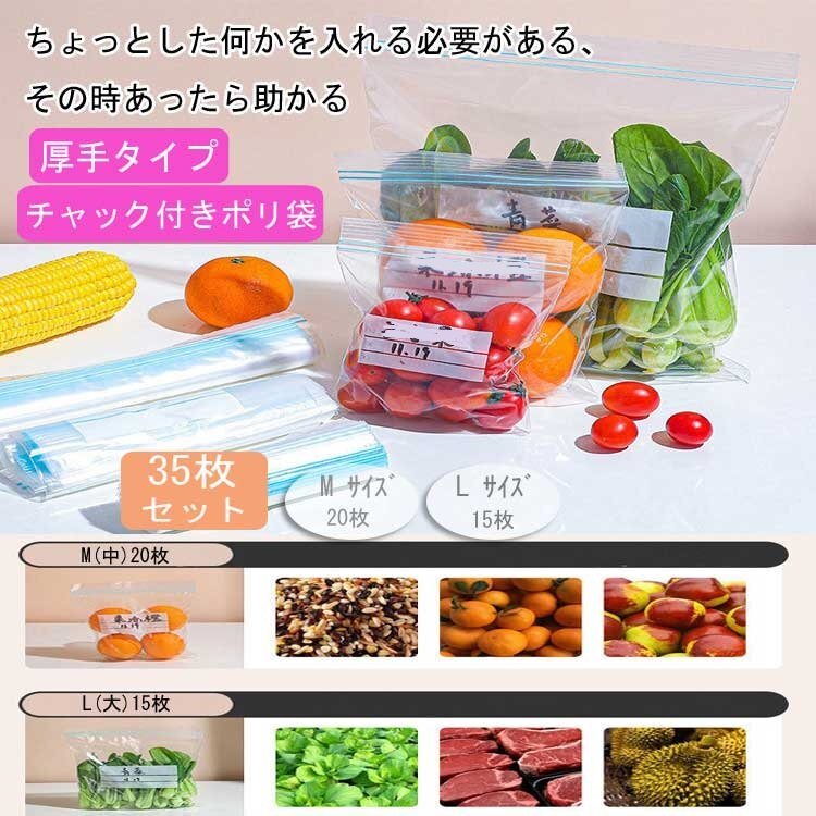 ◆チャック付きポリ袋 透明 厚手 PE素材 密閉 書き込み式 メモ可 片付けグッズ 保管 整理 仕分け袋 食材の小分け ポリ袋厚手 冷凍 冷蔵保存に L15枚 M20枚 計35枚 PPP35S