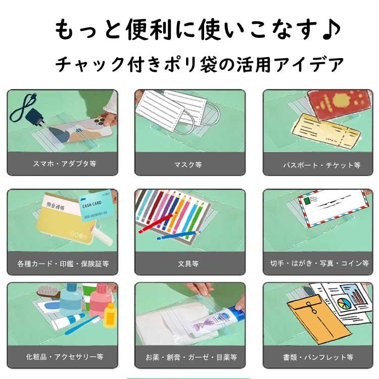 ちょっとした何かを入れる必要がある、その時あったら助かる厚手タイプのチャック付きポリ袋です。