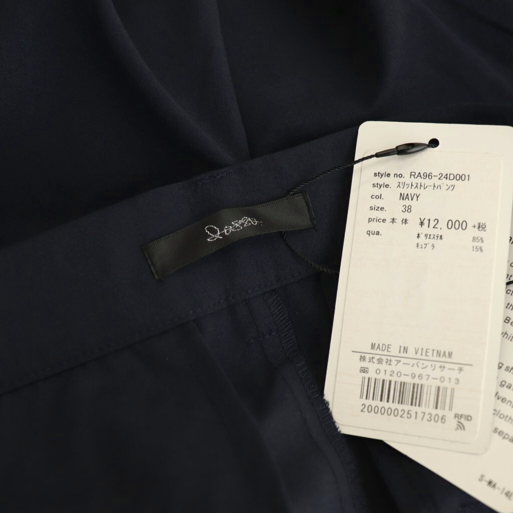 未使用品 ロッソ ROSSO アーバンリサーチ スリットストレートパンツ スラックス センタープレス 38 紺 ネイビー /AT ■OS レディース