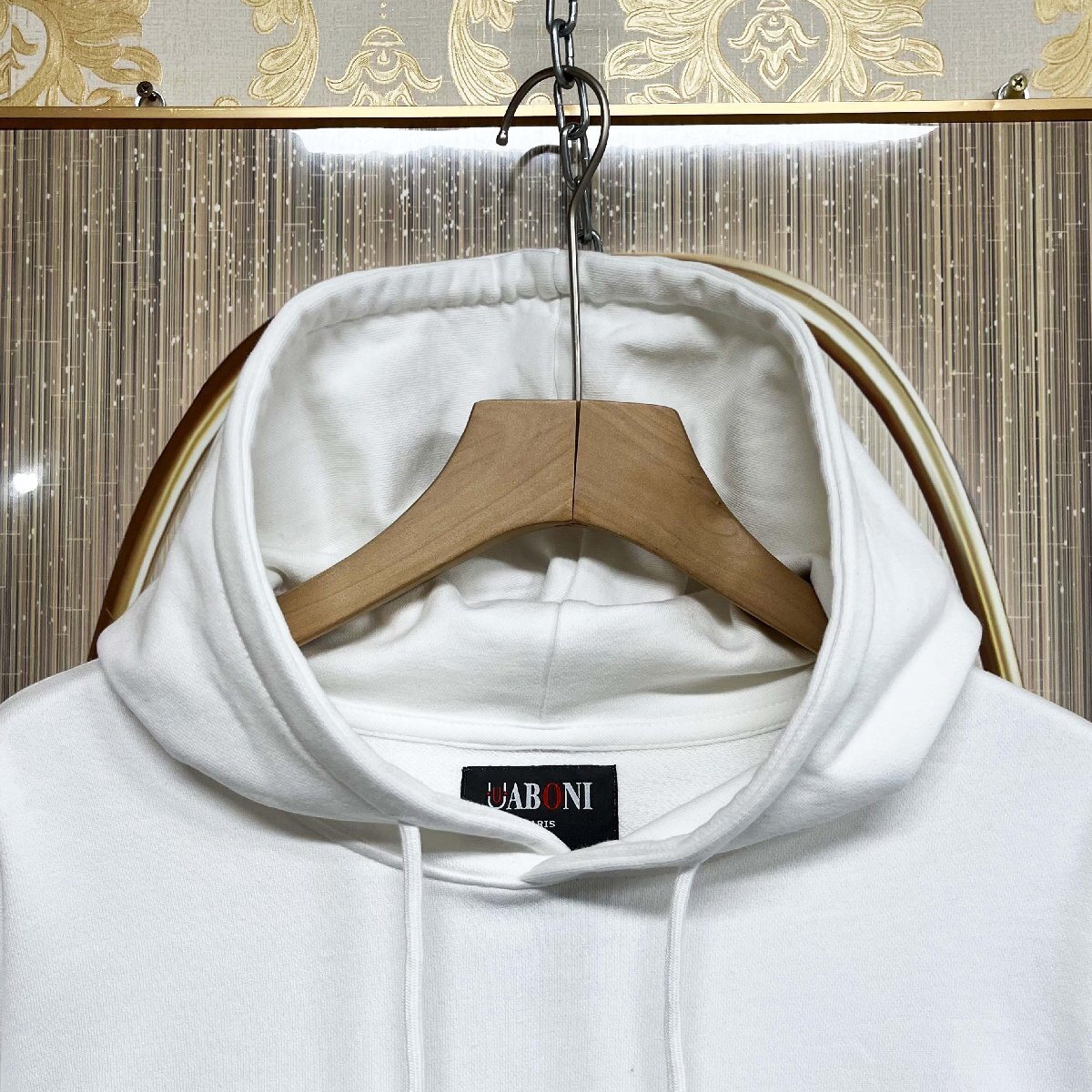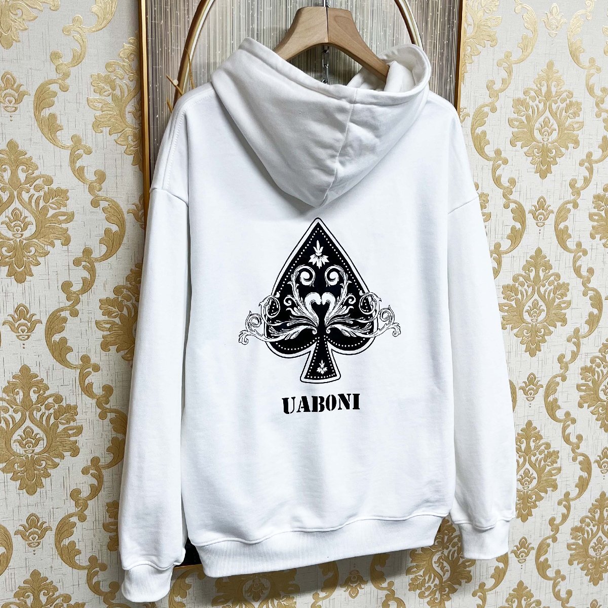 高級EU製&定価4万◆UABONI*Paris*パーカー*フランス*パリ発◆エジプト綿100% 快適 保温 ロゴ スペード柄 スウェット 長袖 カジュアル 日常 L/48サイズ