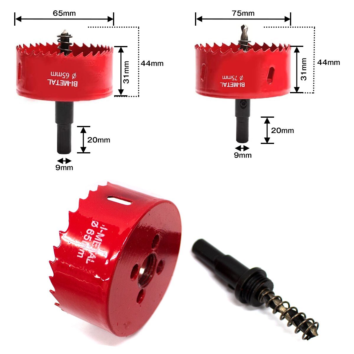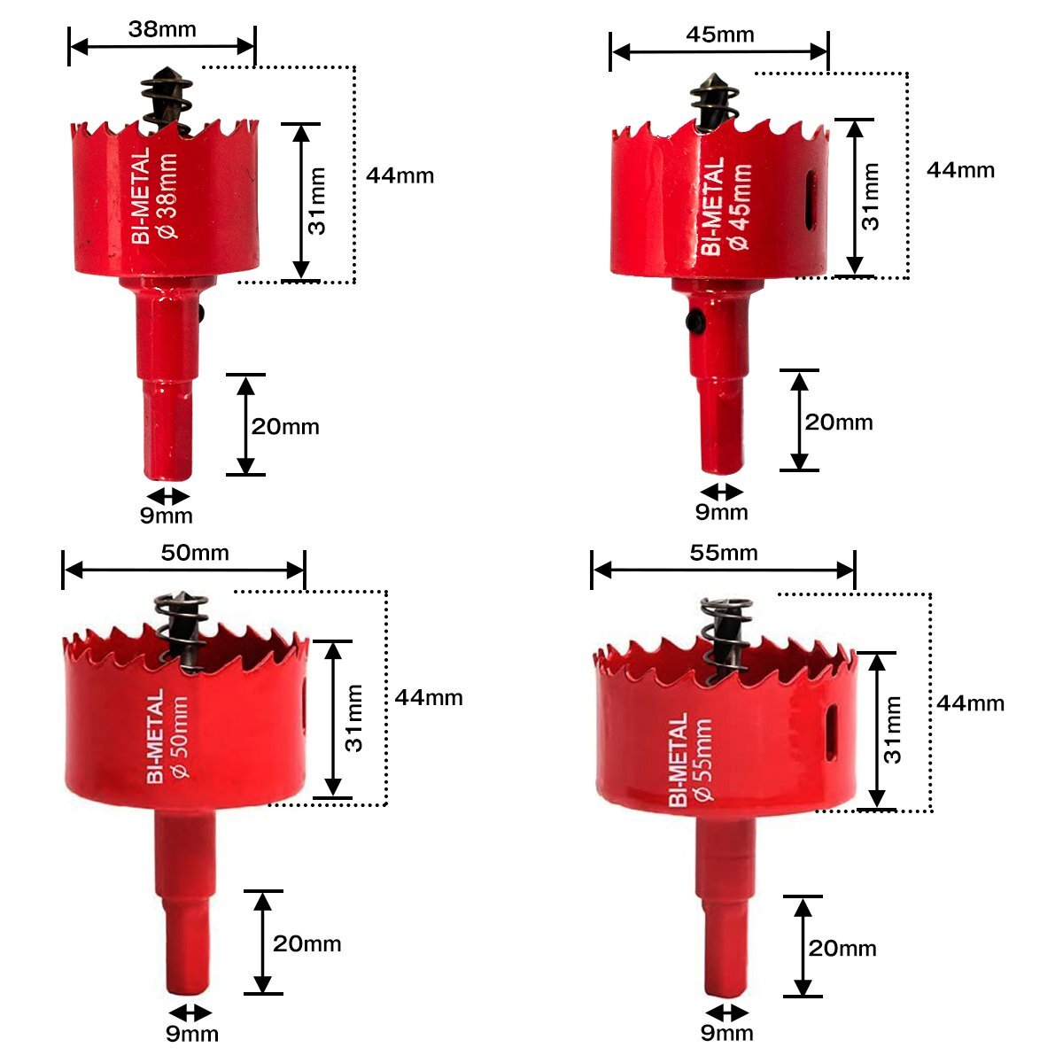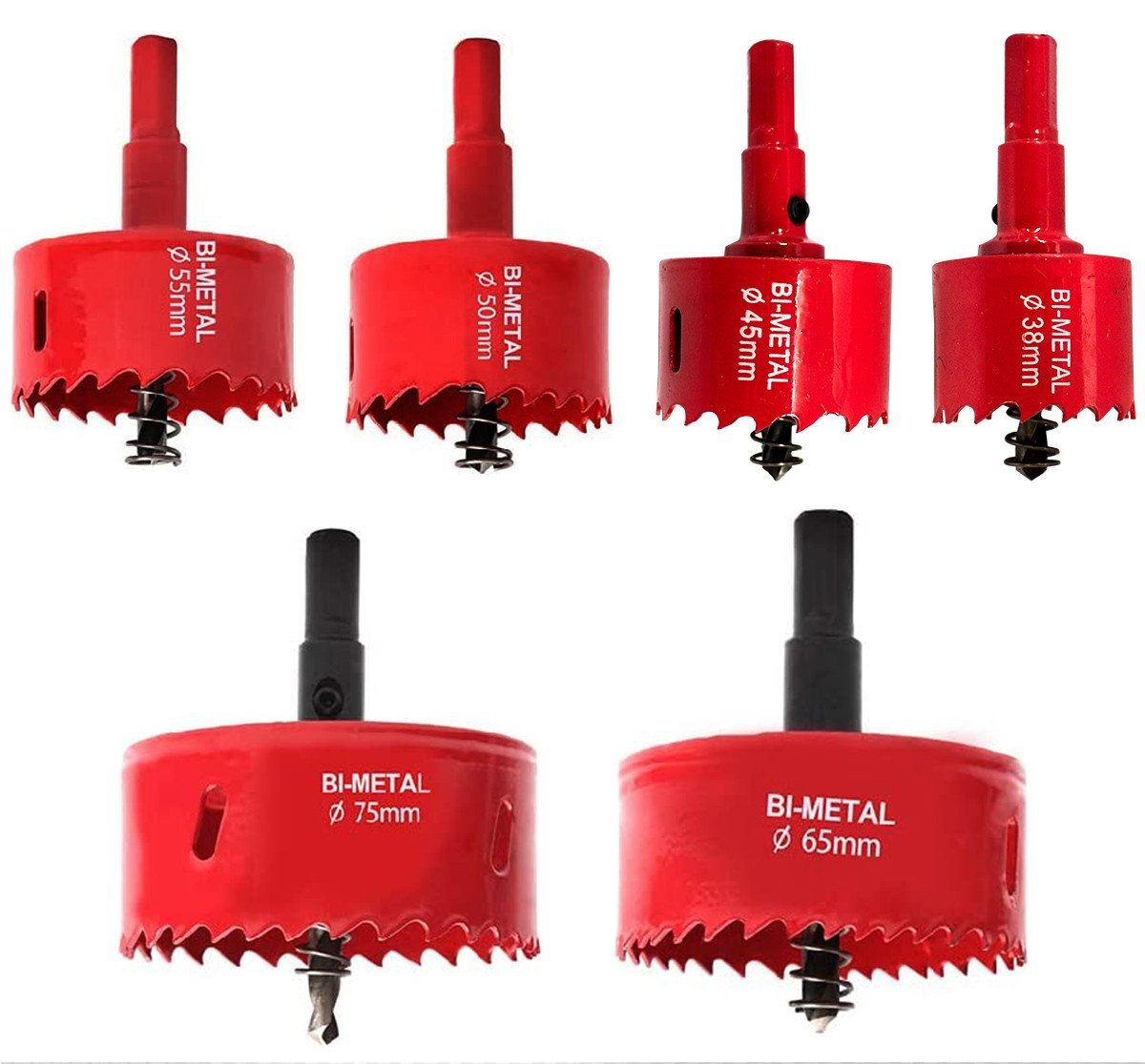 38mm/45mm/50mm/55mm/65mm/75mm 6点 セット バイメタル ホールソー 穴開け 工具 ドリル ビット 穴あけ 超硬 ホルソー ボード
