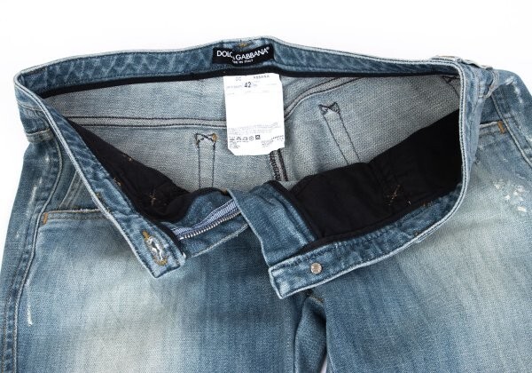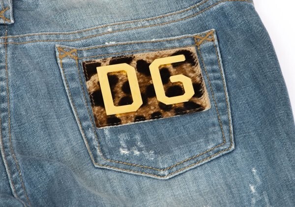 ドルチェ&ガッバーナDOLCE&GABBANA バックロゴパッチクラッシュデニムパンツ インディゴ42 |