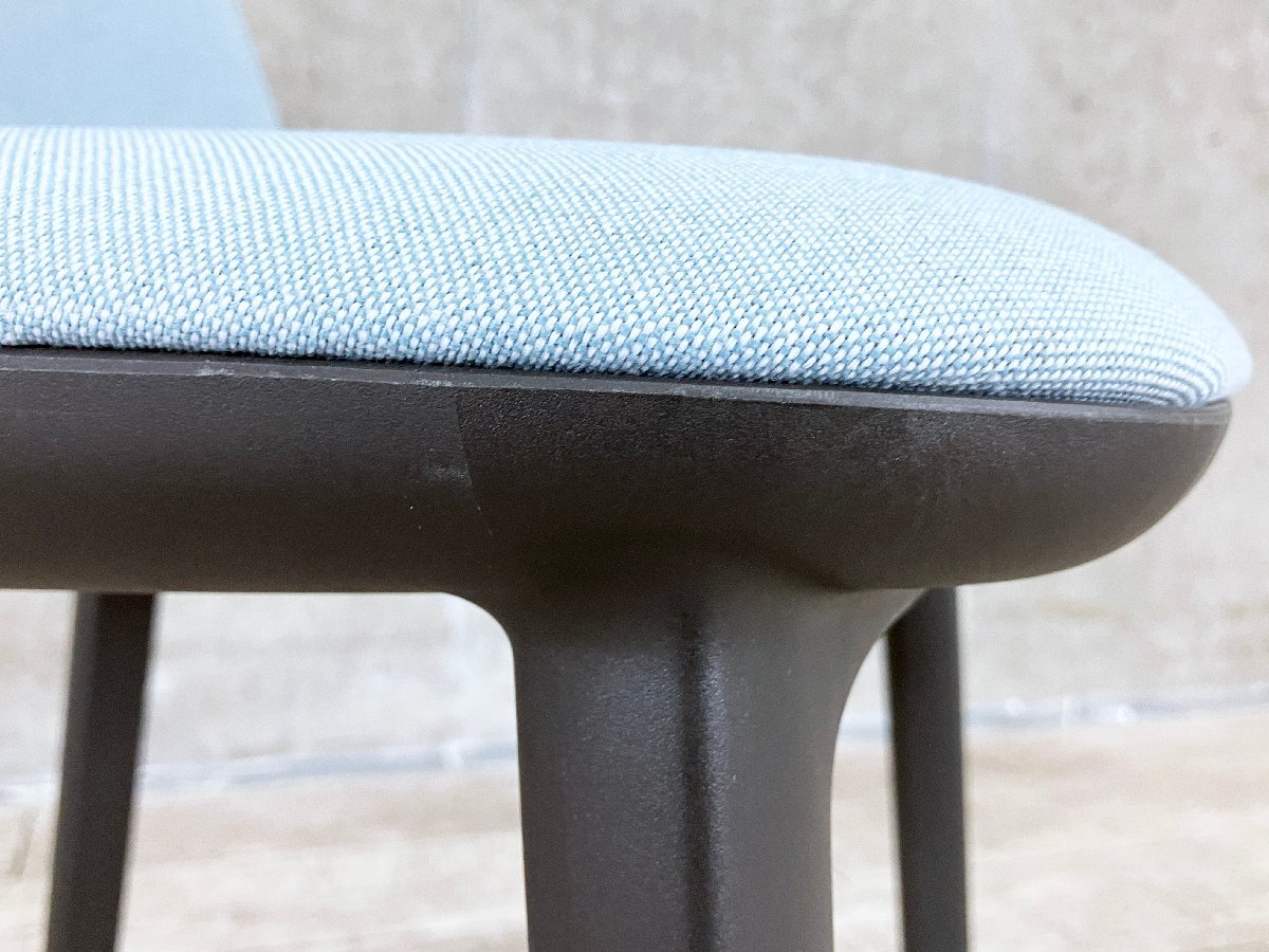 | ■『vitra(ヴィトラ)』より『Ronan & Erwan Bouroullec(ロナン & エルワン・ブルレック / ブルレック兄弟)』によるコンパクトなシルエットの『SOFTSHELL SIDE CHAIR(ソフトシェル サイド チェア)』です。 柔らかなクッションにより、とても快適性の高い座り心地のダイニングチェアです。 背もたれの内部には柔軟性に優れた骨組みが用いられ、座る人の身体を優しく受け止め包み込みます。 座りながら体勢を変える際にも、内部構造の骨組みが体の動きに合わせて柔軟に対応するため、長時間に渡り快適に座り続けることができます。 ■色/ライトブルー ■サイズ/W490 x D550 x H825 SH447 ■状態/使用感も少なく特筆するようなダメージは御座いません。(写真参照) 雰囲気を損ねるダメージはなく、日常使用には問題ございません。 中古品ということをご理解いただき、ご入札をお願いいたします。 |