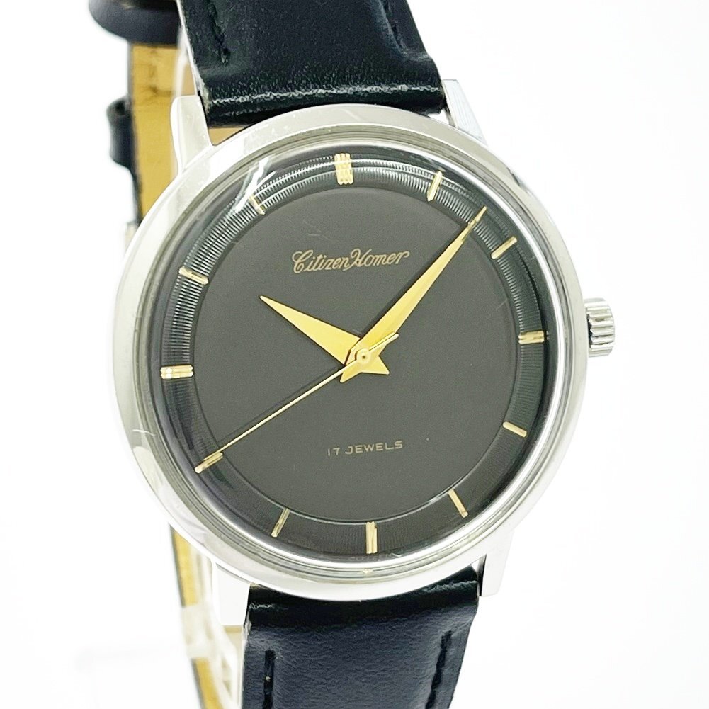 【1円スタート】CITIZEN シチズン 1930 Homer ホーマー 70周年記念 17石 GP×SS ブラック系文字盤 手巻き メンズ腕時計 492760