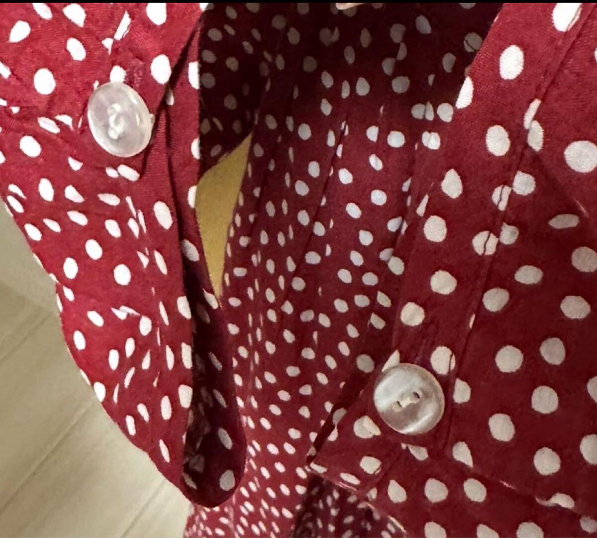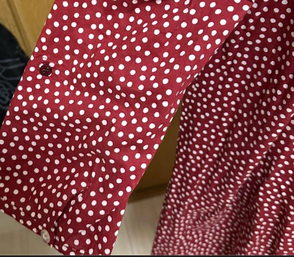 袖のボタンが紛失しており、別の透明なボタンが付いています。写真をご参照ください。