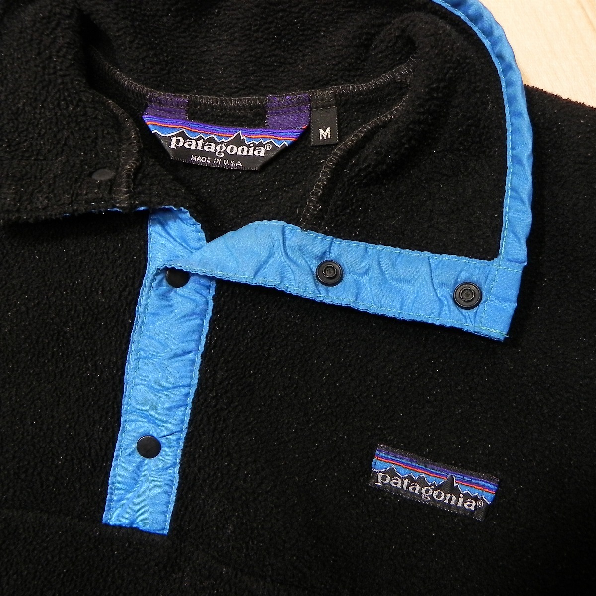 ★ 80s USA製 三角タグ ポケット無し patagonia 25541 スナップT シンチラ フリース M パタゴニア ビンテージ 黒 ブラック 古着 ★b
