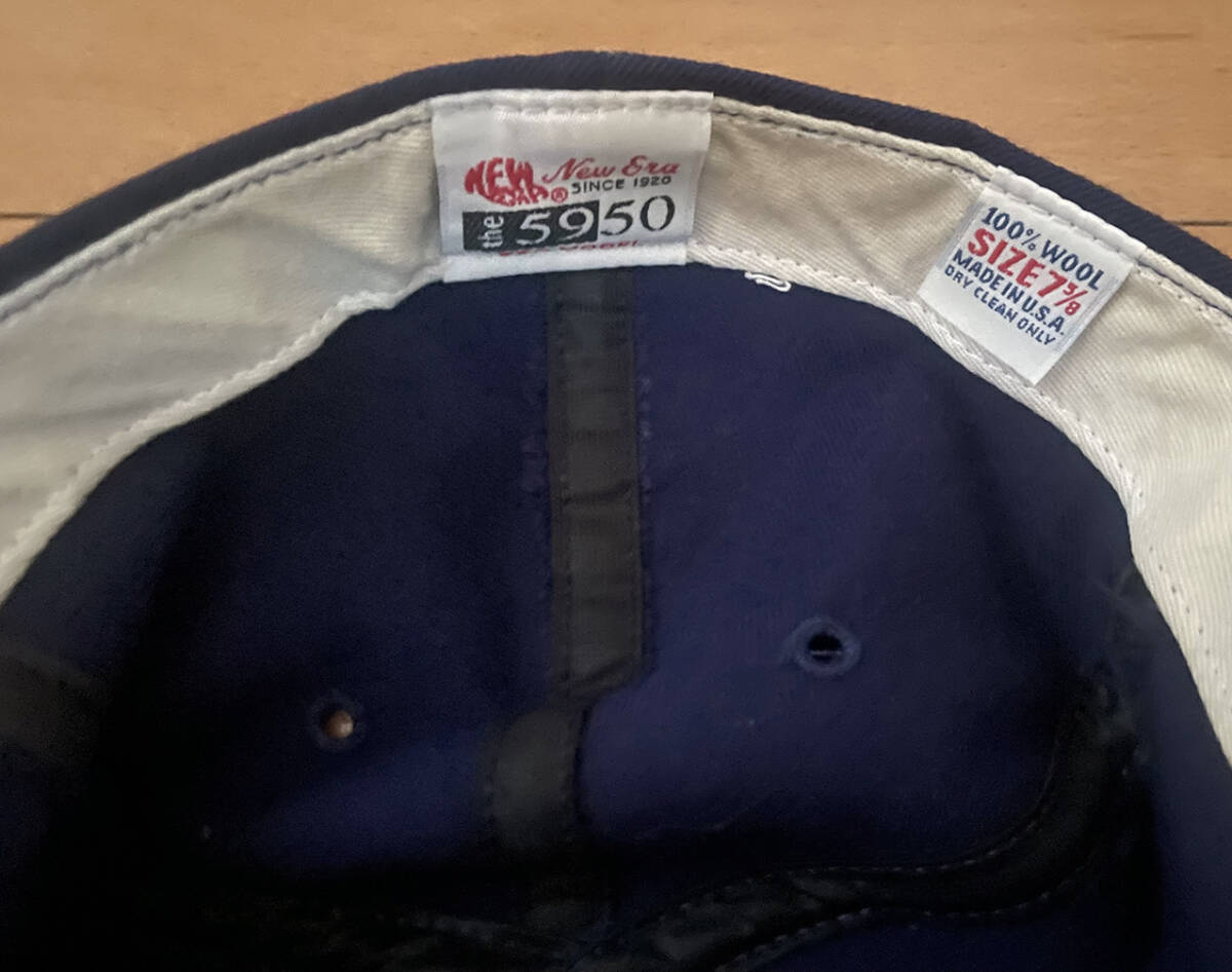 90年代ニューエラNEW ERA製旧ロゴタグのプロ野球NPBヤクルトスワローズYAKULT SWALLOWS59FIFTYショップ別注キャップです。まだNPBでニューエラのキャップが使用されていなかった頃に日本のショップで販売。前面のみにロゴマークが刺繍(少し黄変有)。外側に大きな汚れ等はありませんが、洗いシワは少し有。つば裏面と内側テープは経年による黄ばみ・汚れはあります。出品前にぬるま湯で手洗い済み。サイズ7 5/8inch(経年で多少の縮み有)、Made in USA、ウール100%。当方、喫煙しないので、たばこの匂いうつりはありません。