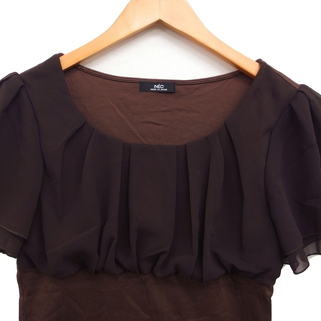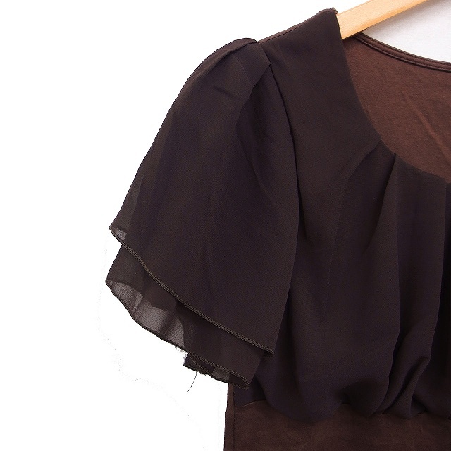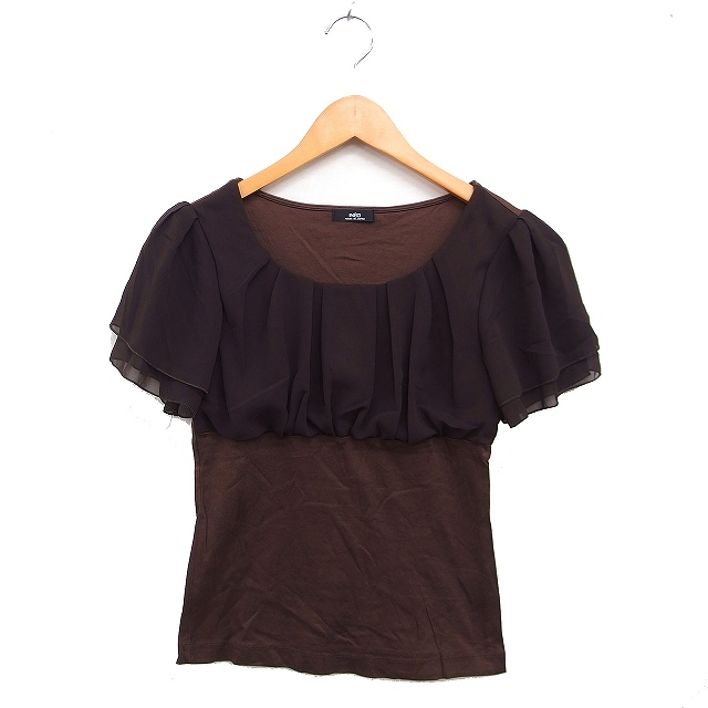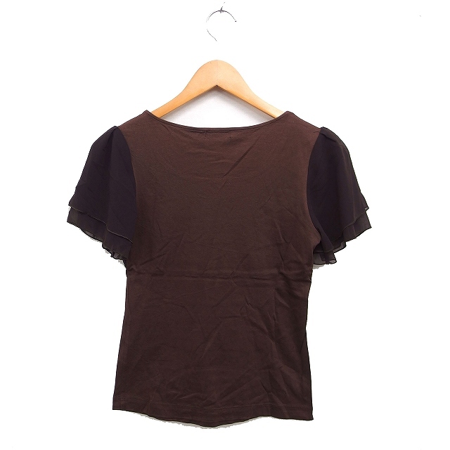 イネド INED シフォン レイヤード カットソー 半袖 丸首 無地 9 ブラウン 茶 /FT39 レディース