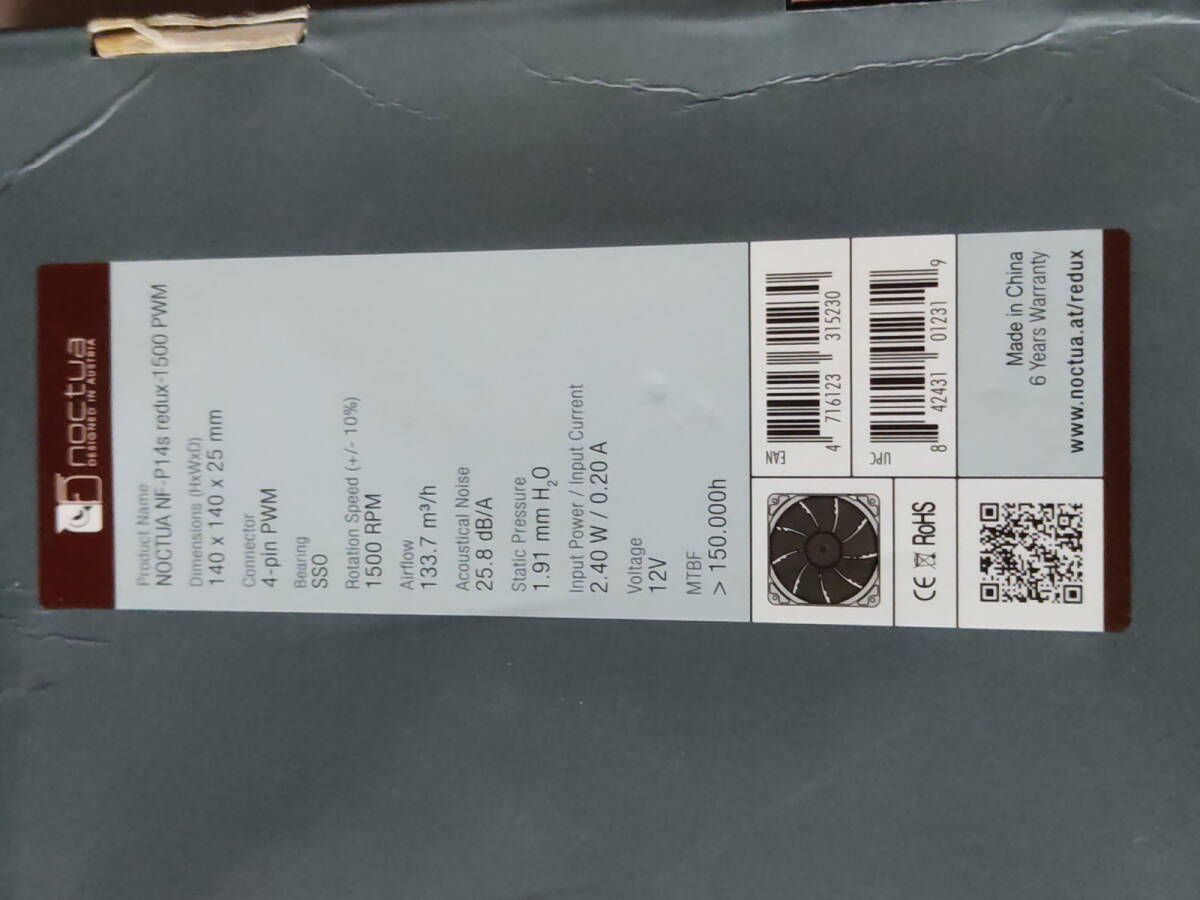 Noctua NF-P14s redux-1500 PWM(14cmファン、4ピン、12V、0.20A)140mm G14B
