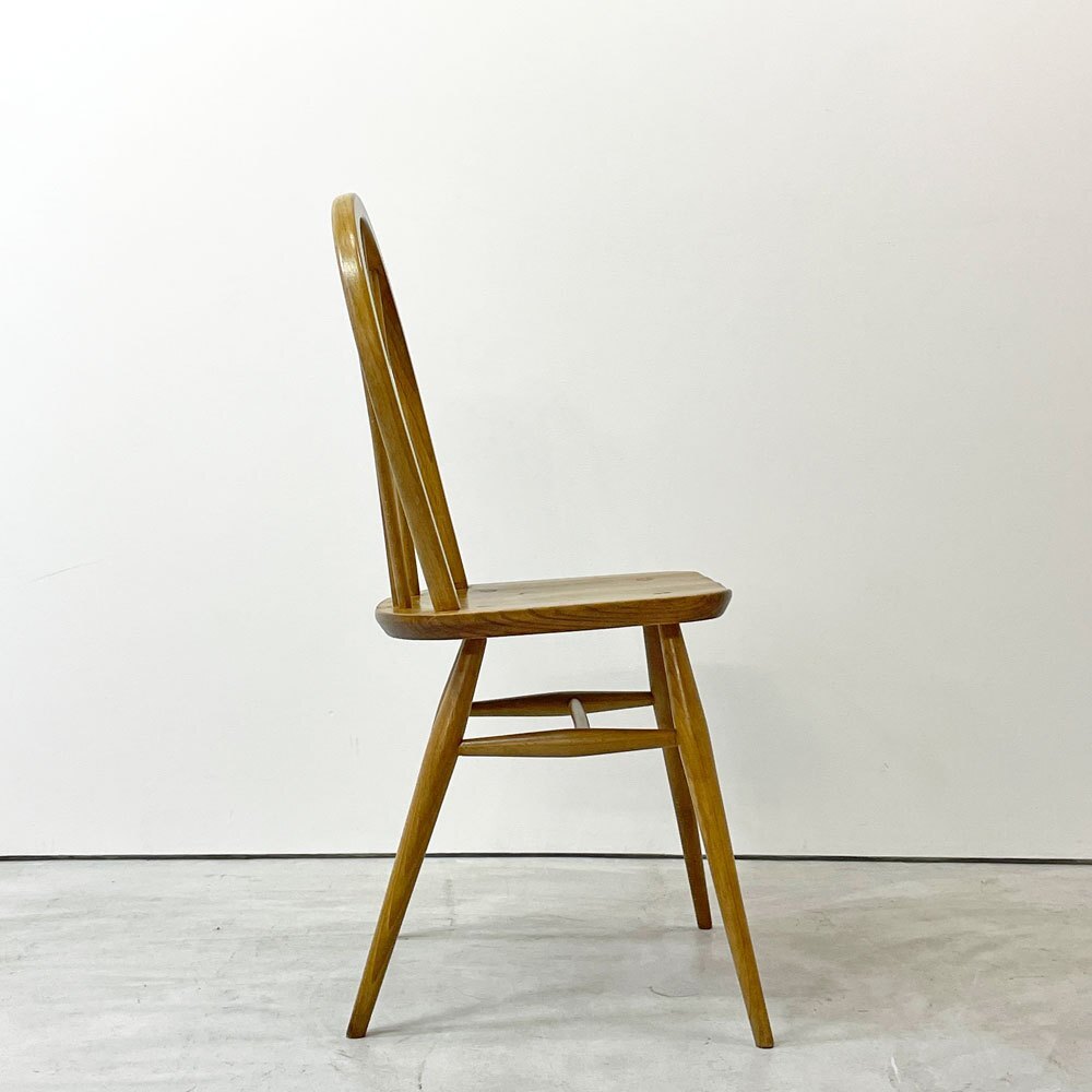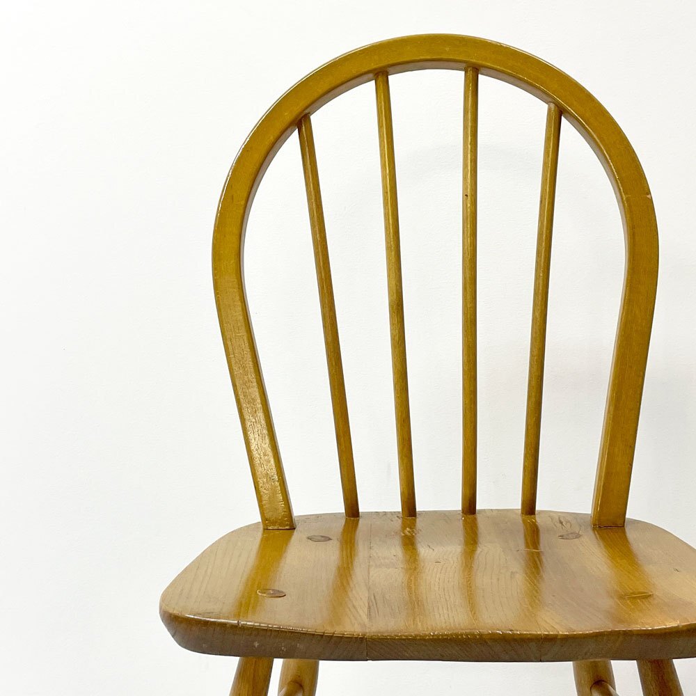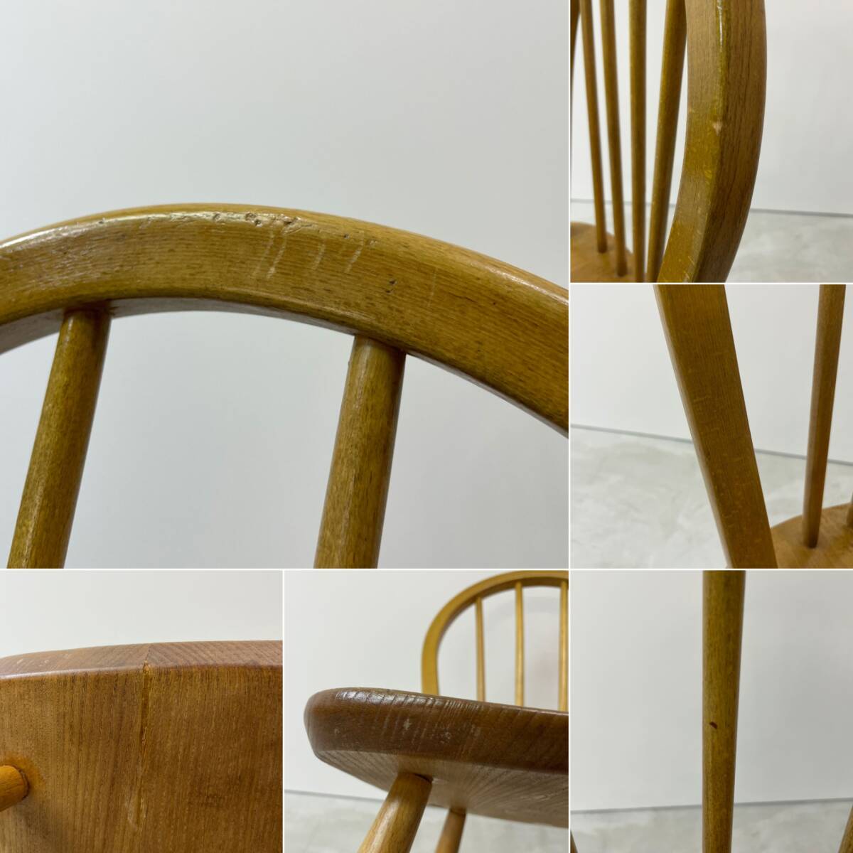 コメント | 1920年創業、英国の老舗"アーコール Ercol"。 こちらは定番の『フープバックチェア』。70年代~90年代に製造されたと思われる、当時のアーコール社のシールがしっかりと残された一脚です。 曲げ木によって継ぎ目無く美しい弧を描く背もたれや、丁寧に削り出された座面はまるで芸術作品の様。 すっきりとして見える抜け感のあるスポークバックは、テーブルに差し込んだ際の姿も美しい1脚です。 素材には、イギリスで幅広く愛されてるエルム材を使用。経年により深みを増した黄褐色をお楽しみ頂けます。 そして座面に直接接合された脚部等、定番ながらも空間に特別感を与えてくれる1脚かと思います。 西洋のビンテージ家具の中でも一際人気の高い英国"アーコール Ercol"のアイテム。是非この機会にご検討くださいませ。 ※当ショップは、主にリサイクル品を取り扱っております。基本的にUSED品である事をご理解頂き、ご入札をご検討下さいませ。 |