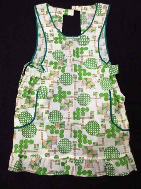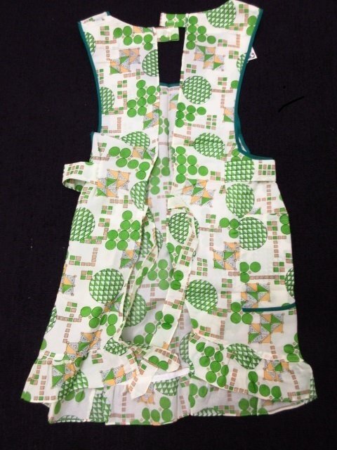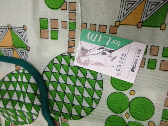 y5309 タグ付き未使用保管品 昭和レトロ エプロン 総柄 グリーン系 ポリエステル100%