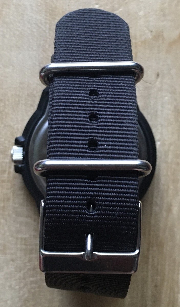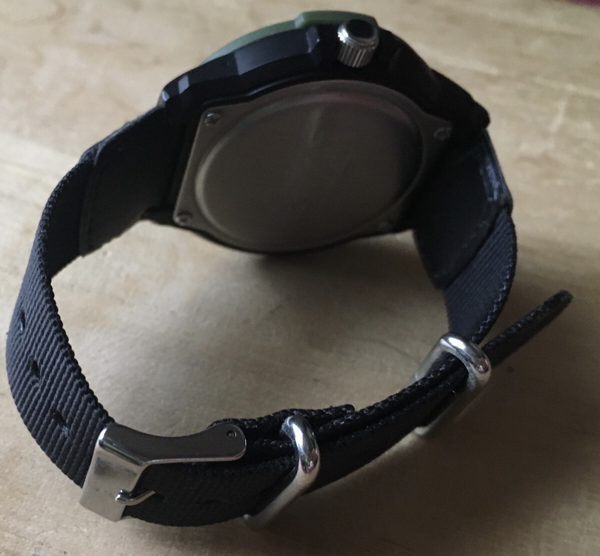 コンディションはフェイス、ベゼル、裏蓋は目立つ擦り傷は無く美品です。ベルトにつきましては軽いヨレやシワが若干ございます。ナイロンベルトの性質上、一度の使用でも軽いヨレが付いてしまいます。あらかじめご了承のほどよろしくお願い致します。