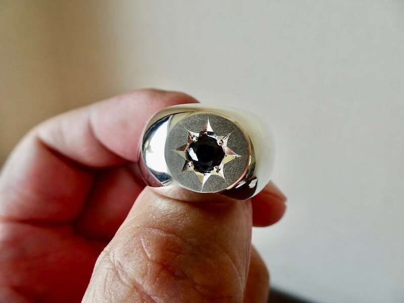 ごらん頂きありがとうございます。 オリジナルブランド 仁尾彫金『一つ星ブラックジルコニア、丸の印台リング』を出品致します。オリジナルのアクセサリーを自ら制作しています。今回、丸をつや消し加工したシンプルな印台リングを制作致しましました。そこに、漆黒に輝く星をイメージした5ミリのブラックジルコニアを埋め込みました。最大幅は約1.5cm、最大厚みは約4.5mm重量も約24gとシルバーをズシリとしっかりとした作りになっています。使い込むとリングはシルバーなので独特の味が出てきます。オリジナリティを追求しデザイン、制作を私自身で行っている為、今回、新品をご用意致します!! *こちらの作品につきまして制作に3週間程度かかります。m(_ _)m こちらの作品につきまして10号から30号まで制作可能でございますm(_ _)m。 シルバー925 約24g (silver刻印あり) ご質問等ございましたらお気軽にaerothmith@mac.comへご連絡下さい。m(_ _)m 金プラチナにつきましてはフルオーダー制作も承っていますので、ご質問等ございましたらお気軽にaerothmith@mac.comへご連絡下さい。m(_ _)m その他も出品していますのでご覧下さい。m(_ _)m *インスタにて仁尾彫金で制作状況を掲載していますのでお気軽にご登録をお願い致します。(^-^) |