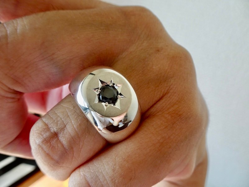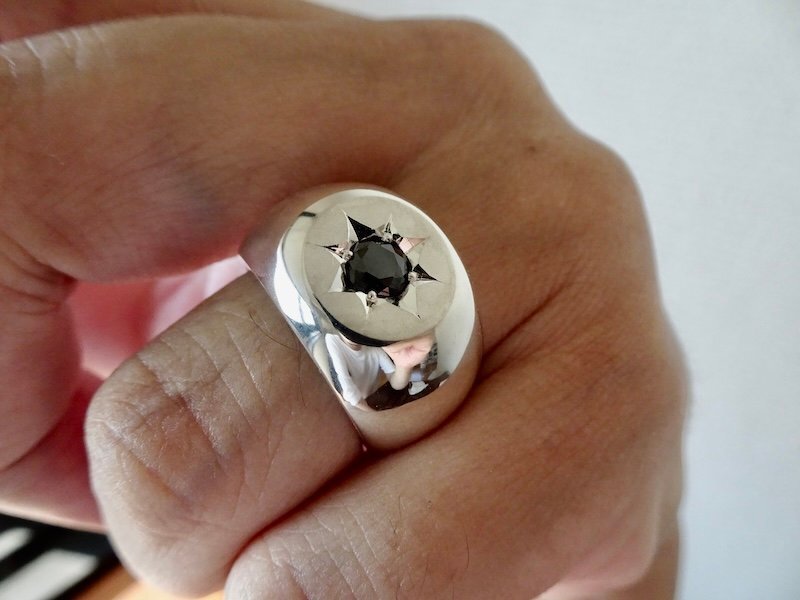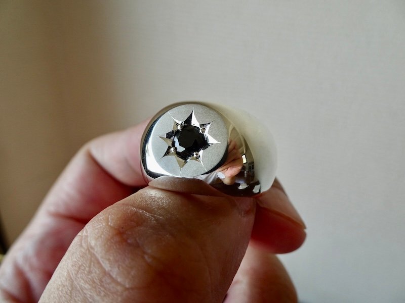 | ■ ■ 商品名: 『一つ星ブラックジルコニア、丸の印台リング』 ■ ■ |