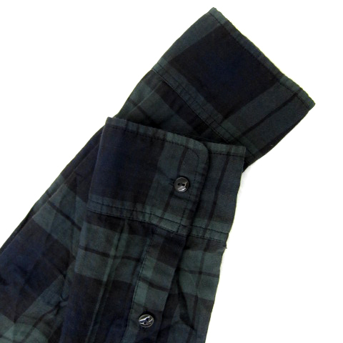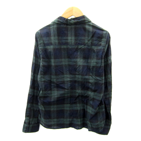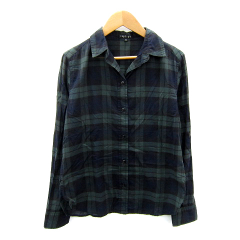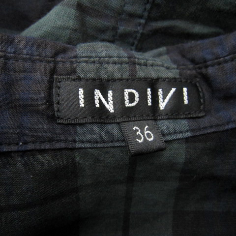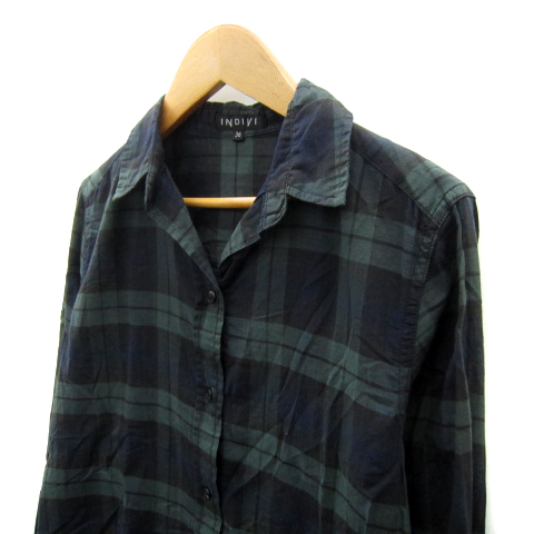 インディヴィ INDIVI シャツ ブラウス 長袖 オープンカラー チェック柄 36 S 緑 グリーン 紺 ネイビー /SY1 レディース