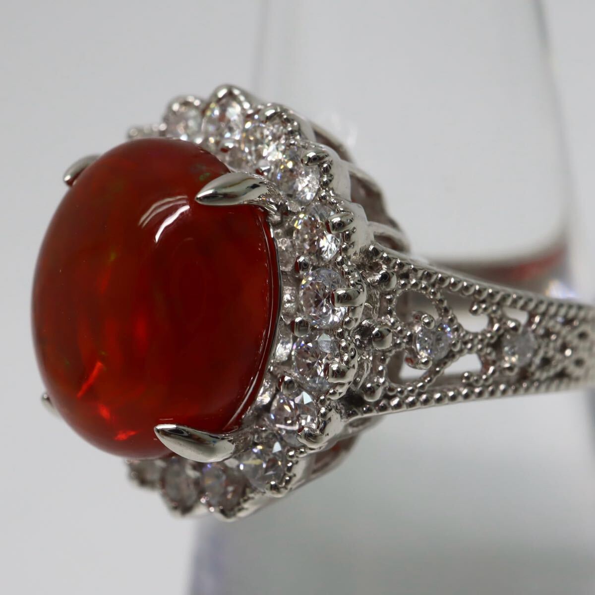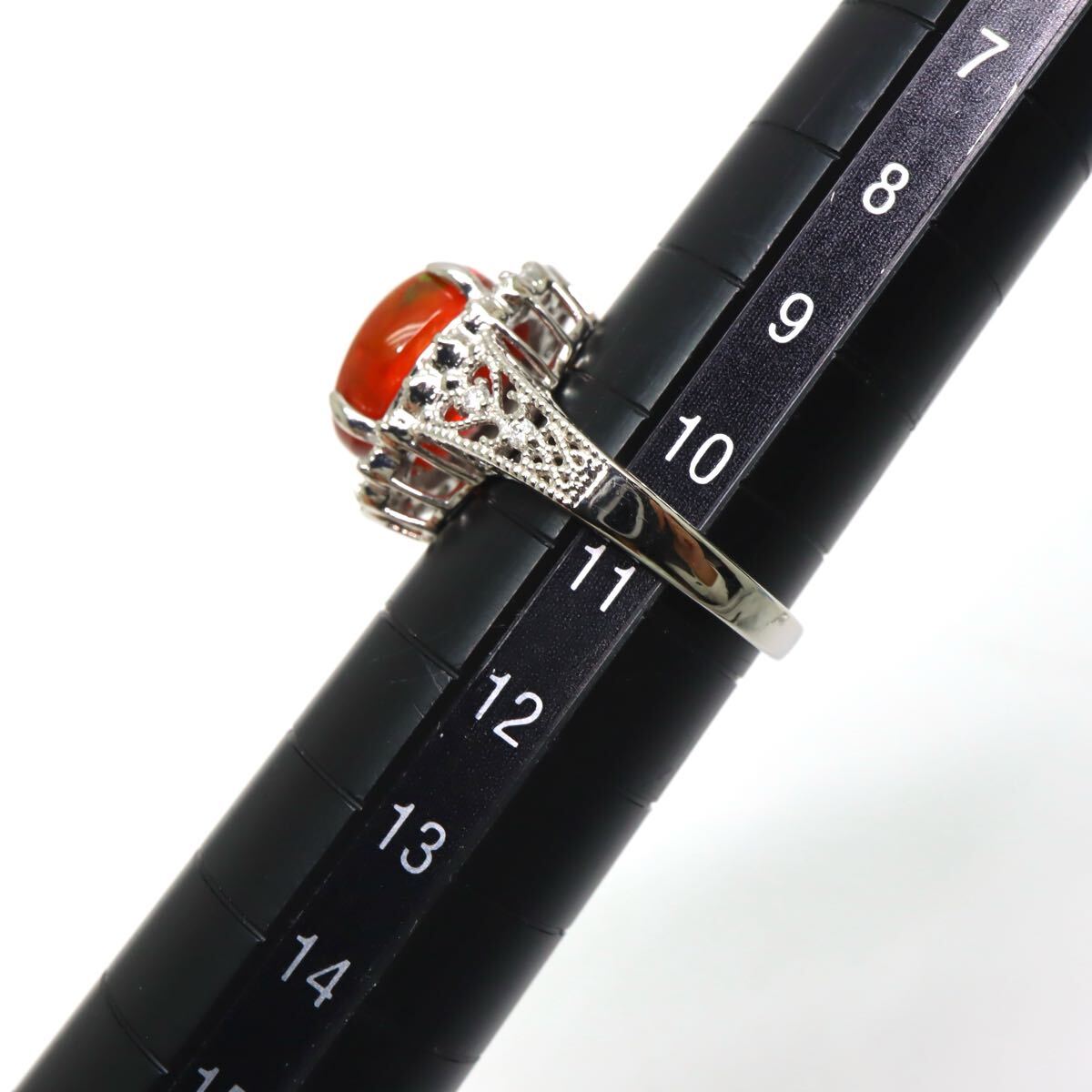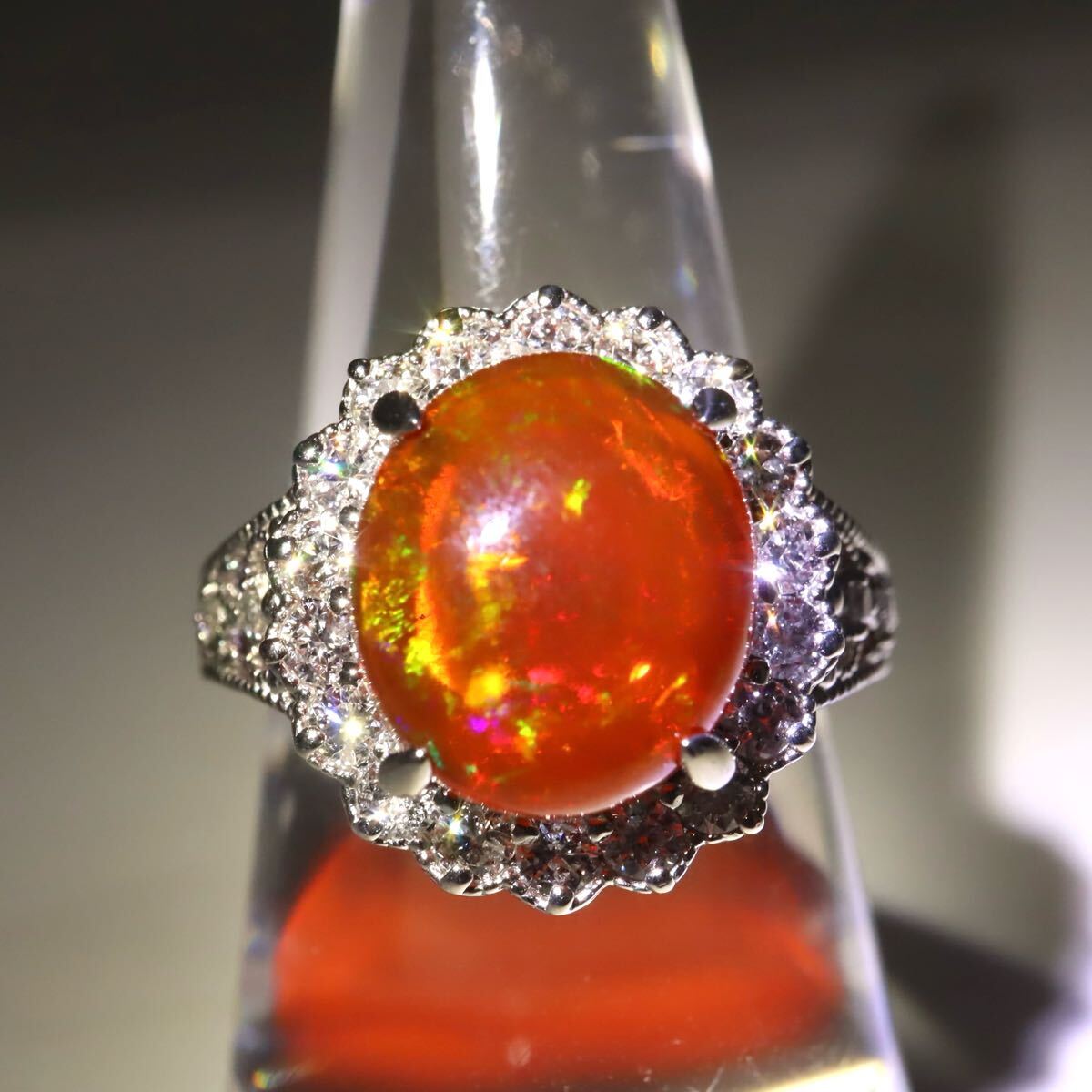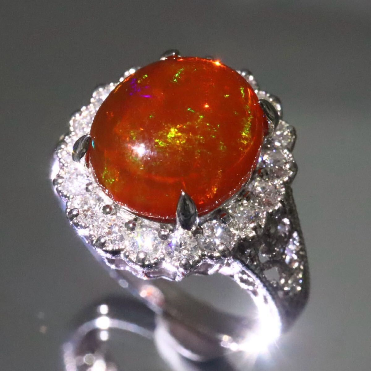 〈天然ファイアオパール/天然ダイヤモンドリング〉