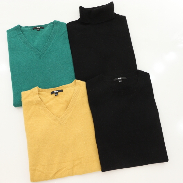 作り、デザインに、定評のある人気ブランド、「UNIQLO」の、カシミヤ100%セーター4枚組になります。