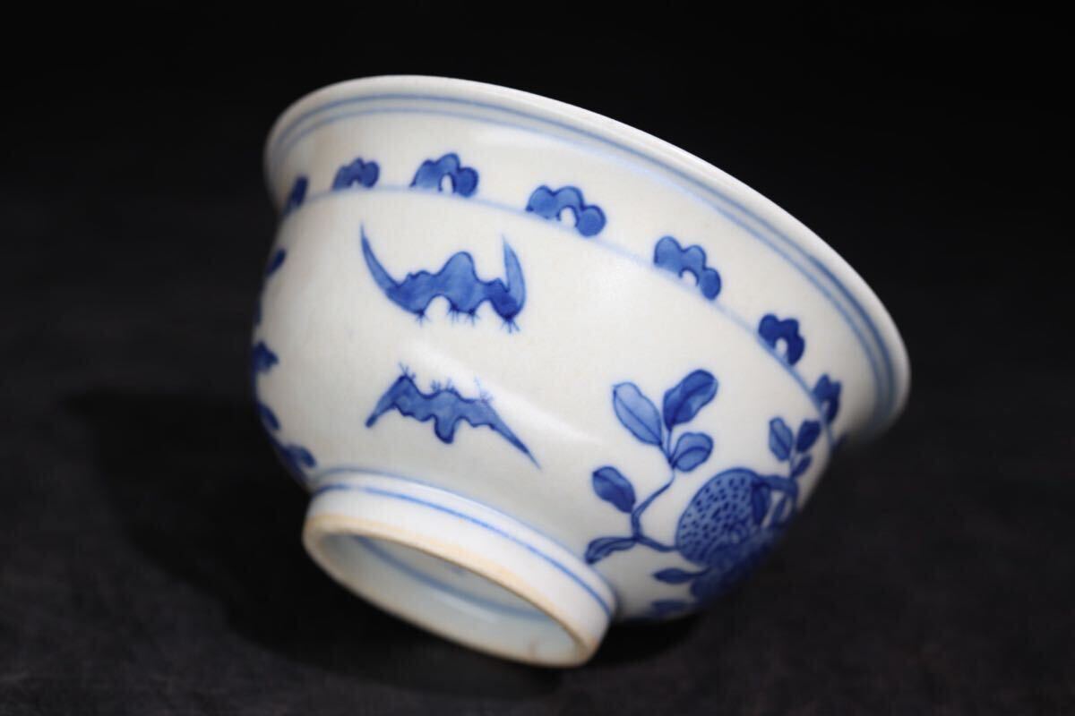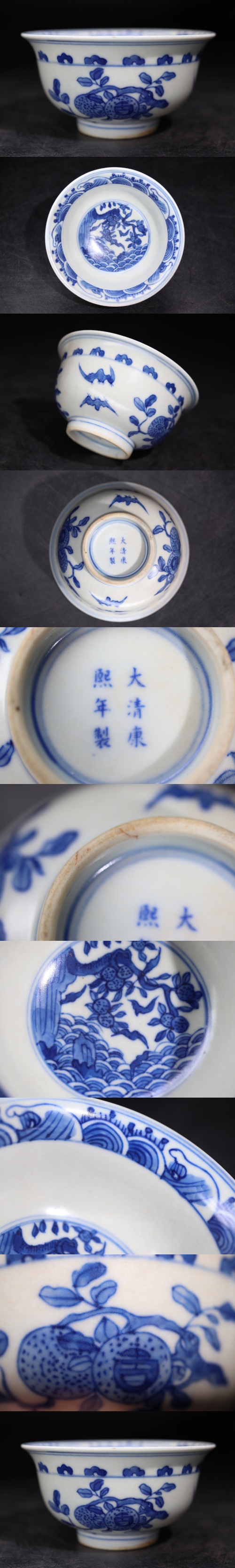 | 大明康熙年製 底款 染付 草花文 煎茶碗 / 明 康熙 中国美術 茶器 煎茶道具 煎茶飾 .G2773 |