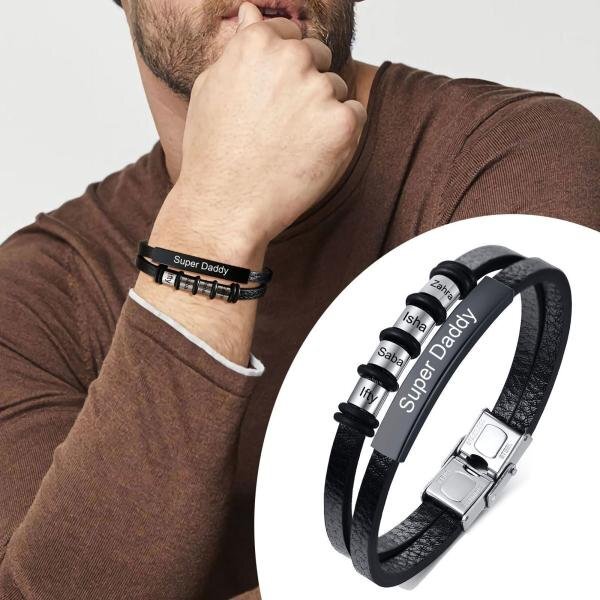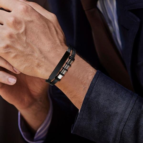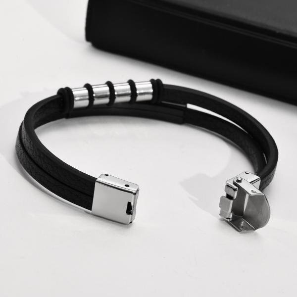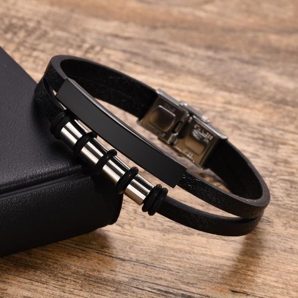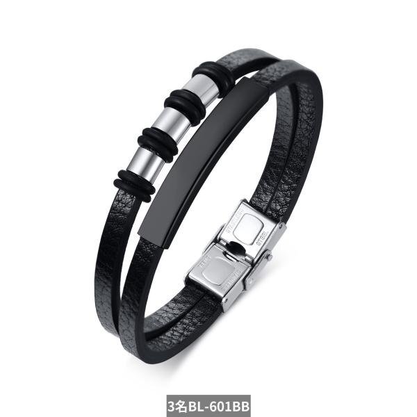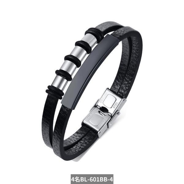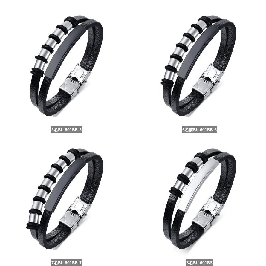 ブレスレット 黒 ブラック レザー ビーズ メンズ