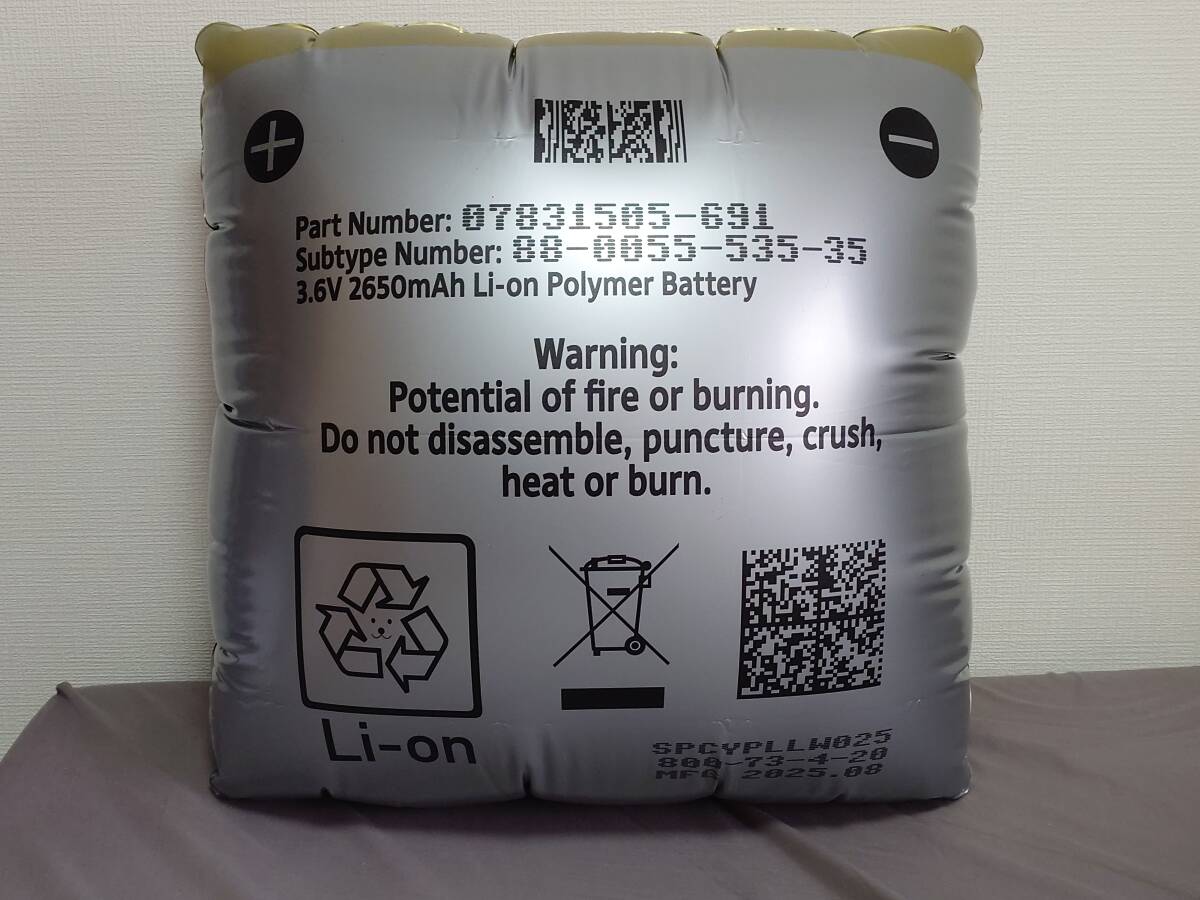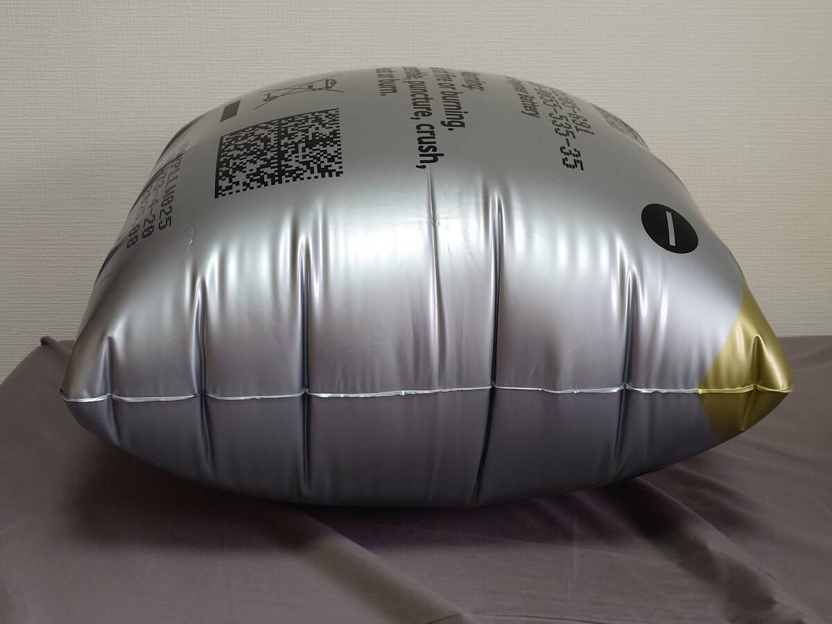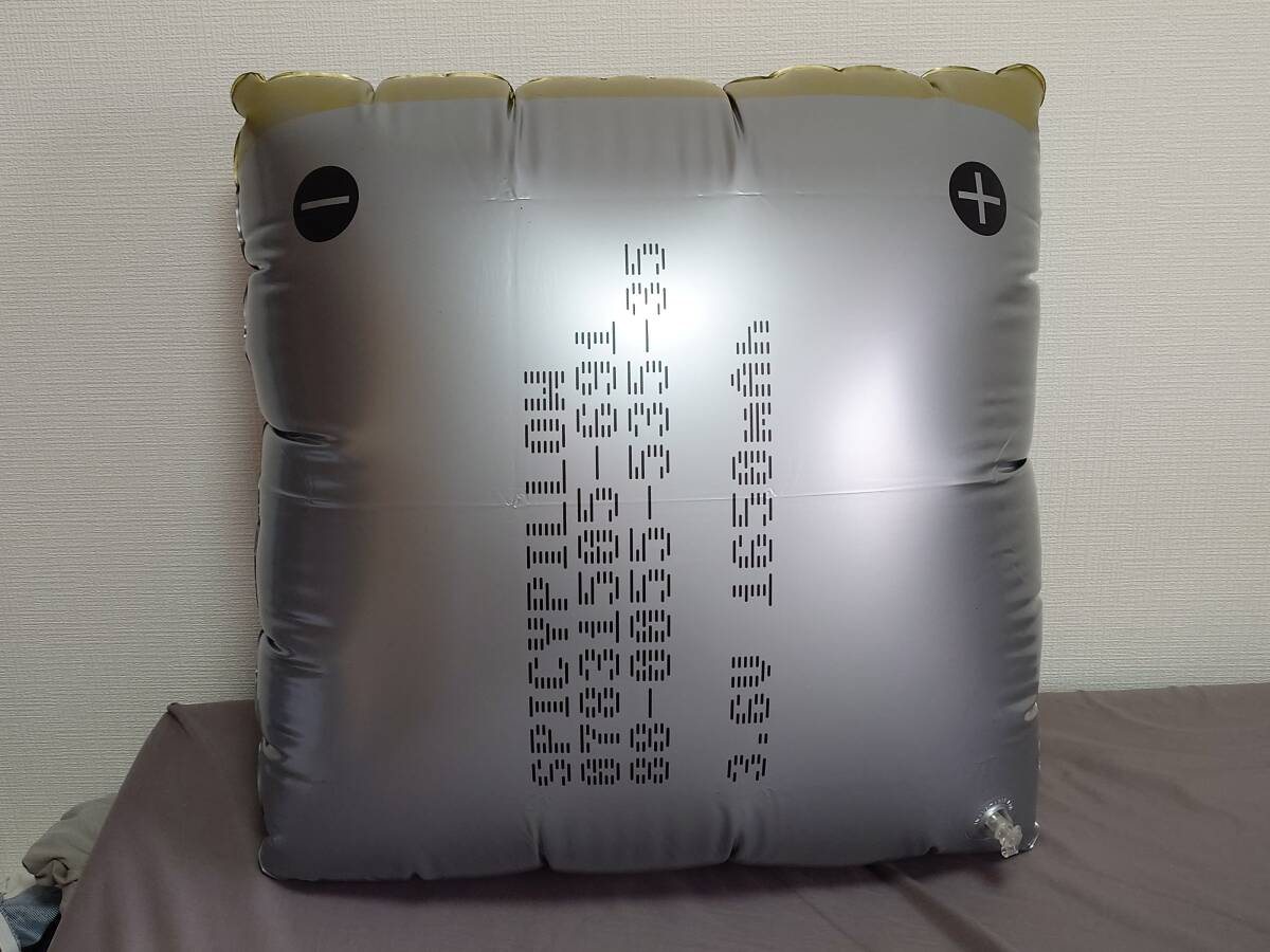故障して膨張したリチウムイオン電池の形をした、いわゆる「スパイシーピロー」。