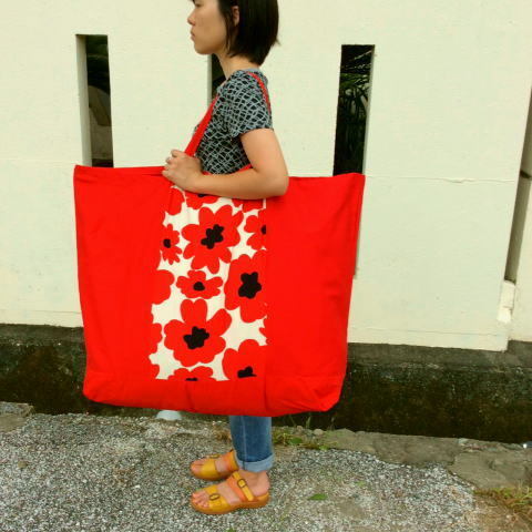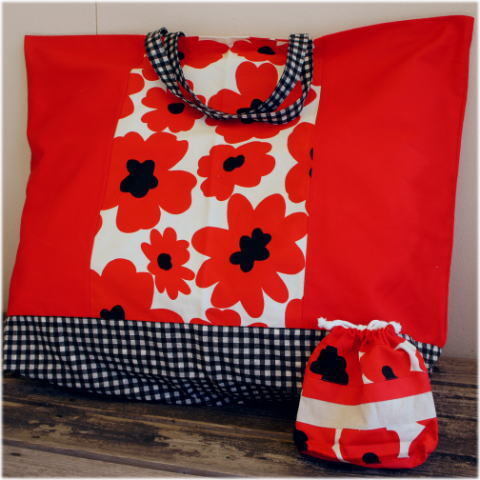 入学、入園!2900円ポップフラワー(赤)【特大】昼寝布団バッグ 手作り小物