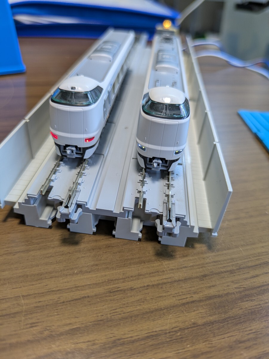 ライト点灯・動力動作確認。先頭車両は接続可能カプラー(標準装備)です。