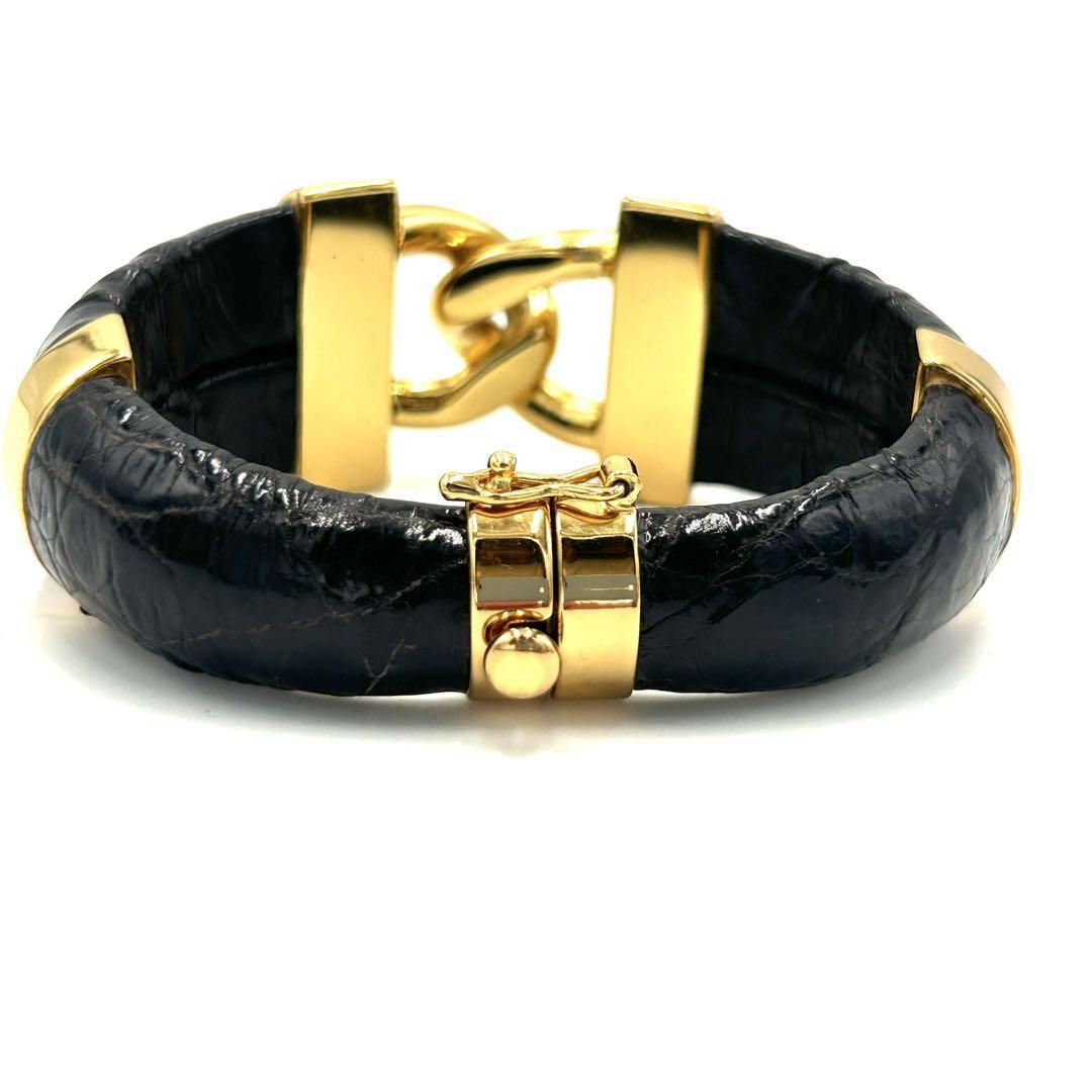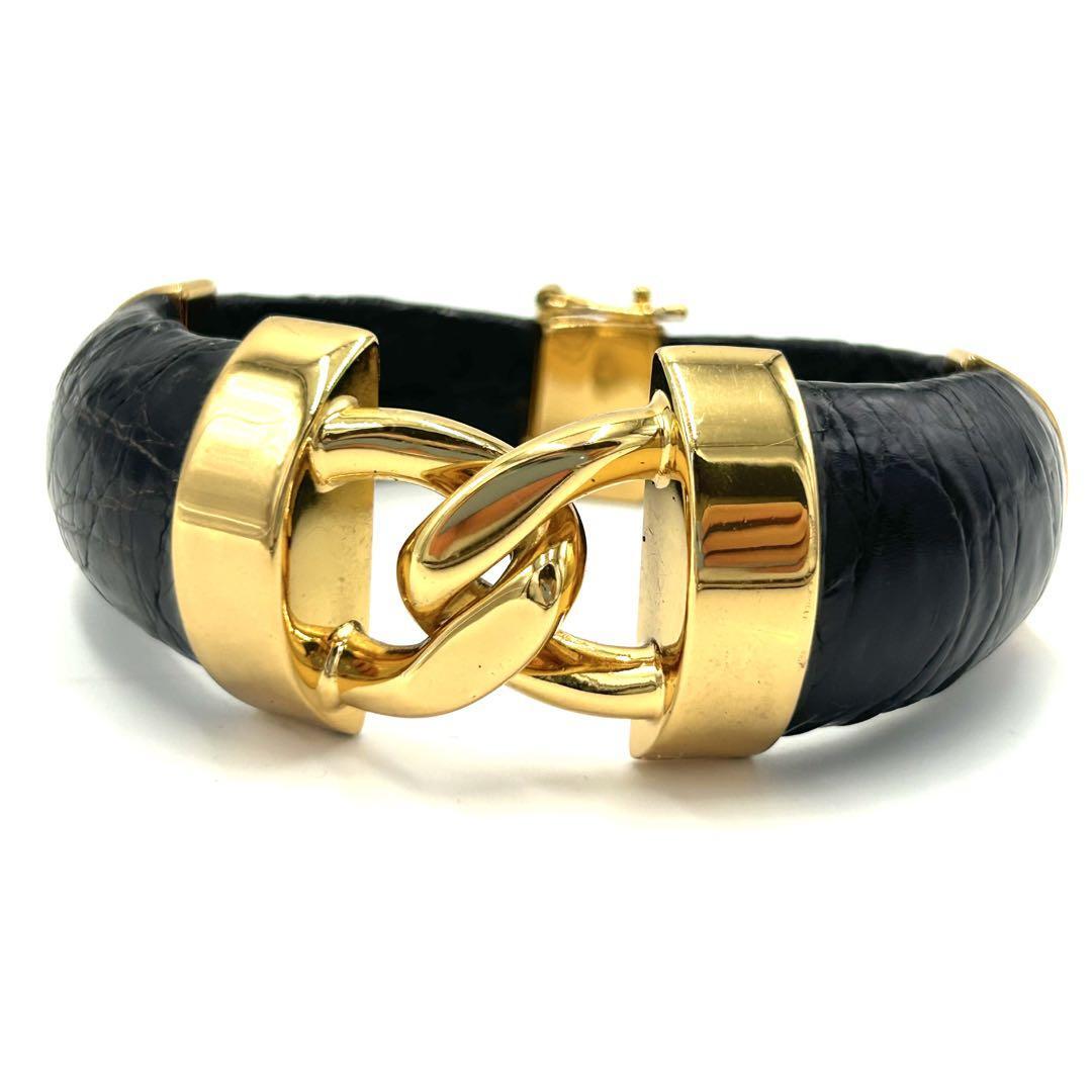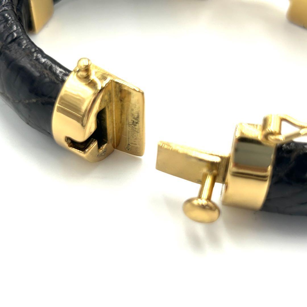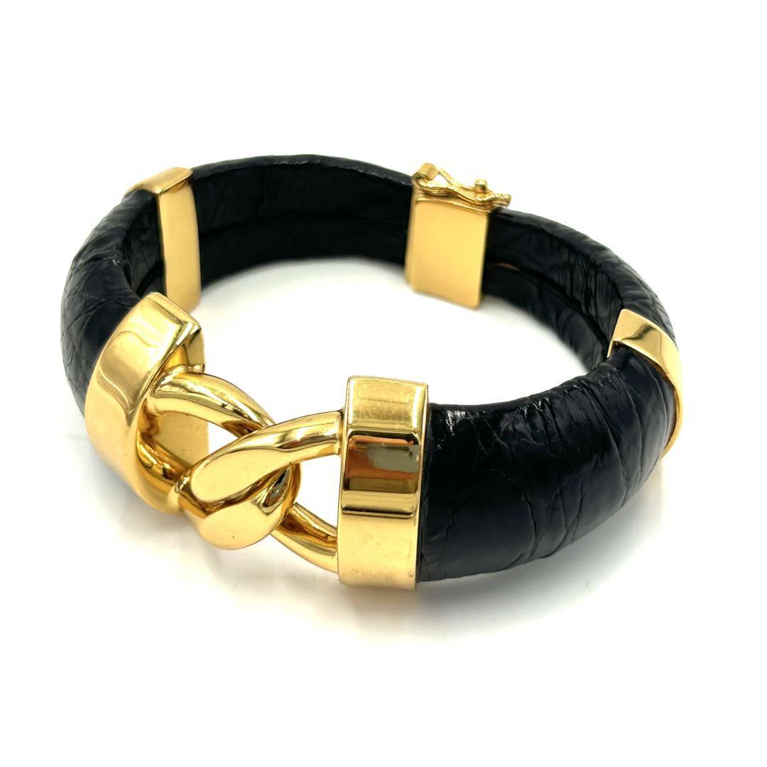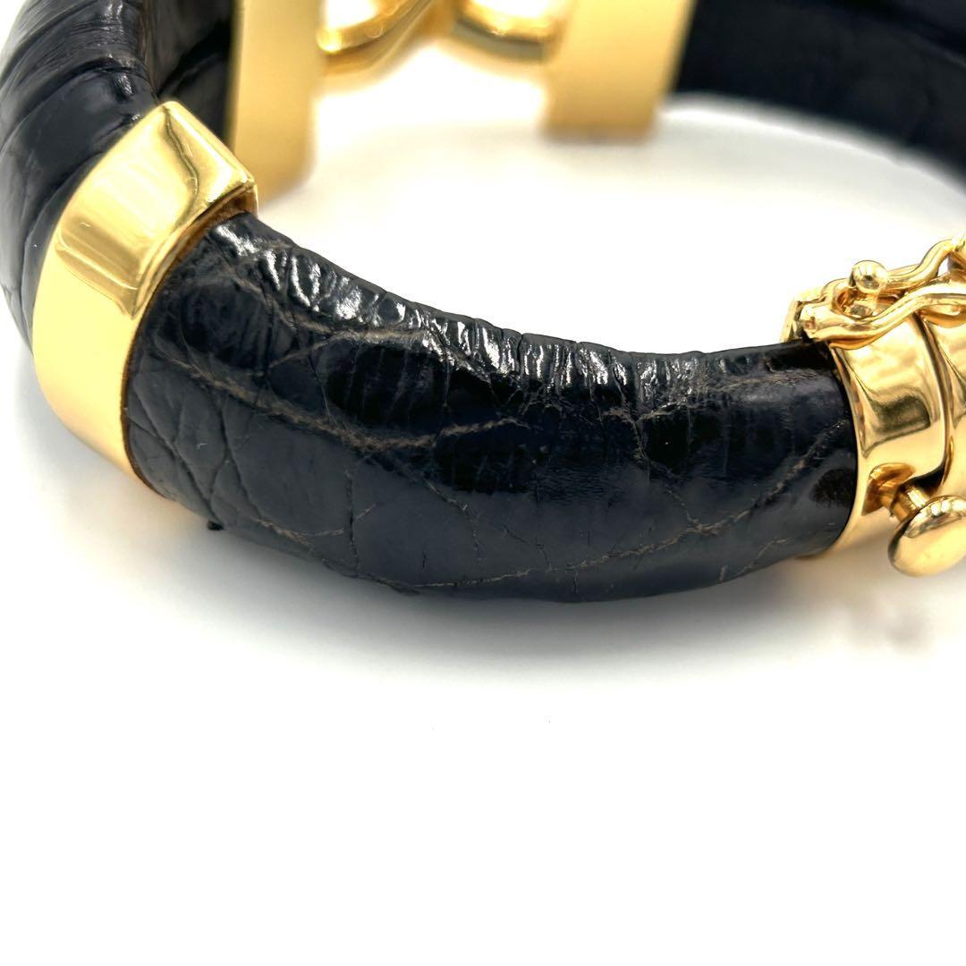 ゴールドとレザーが組み合わさった高級感のあるロエベのブレスレットです。