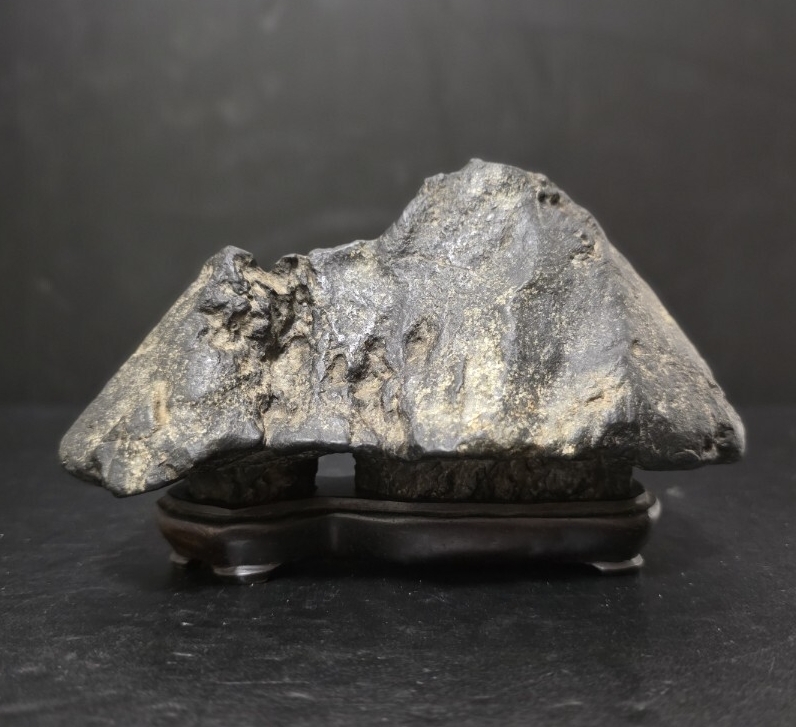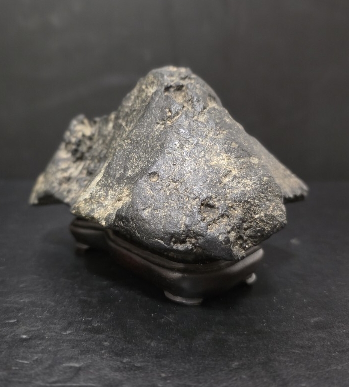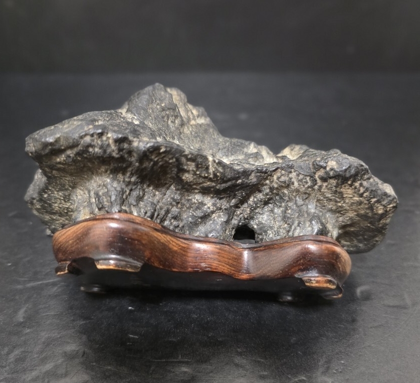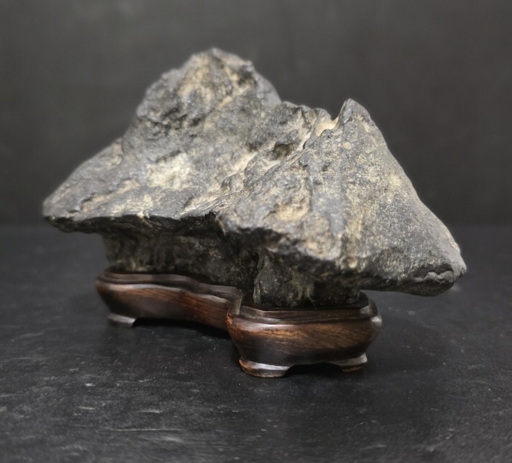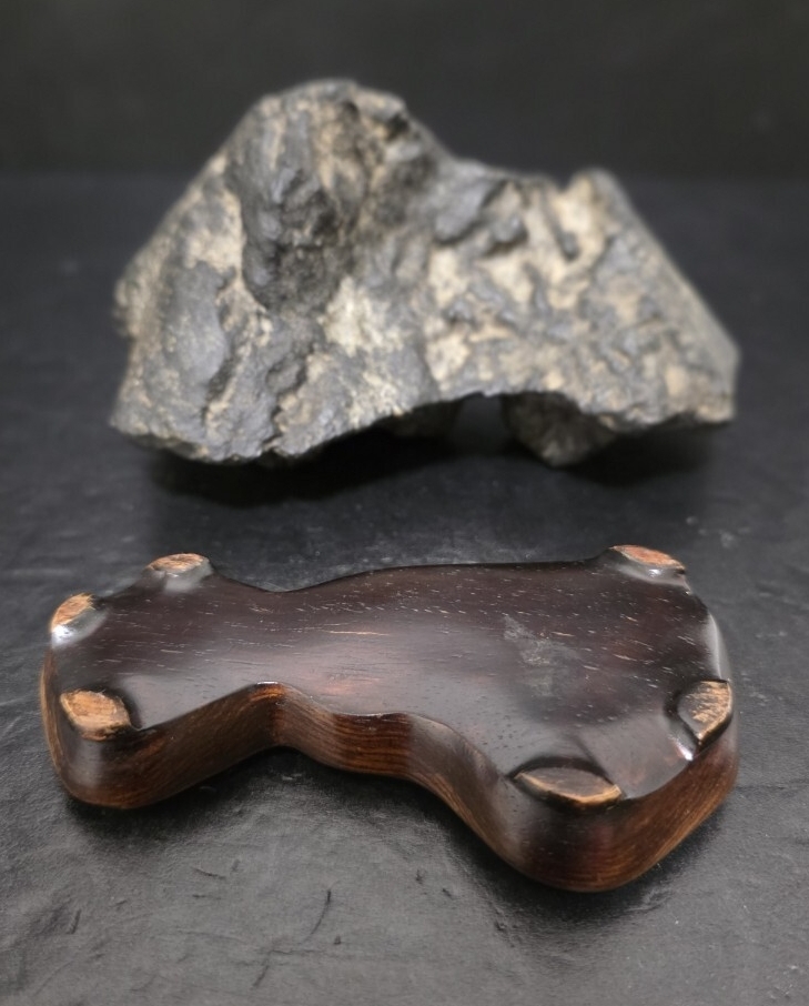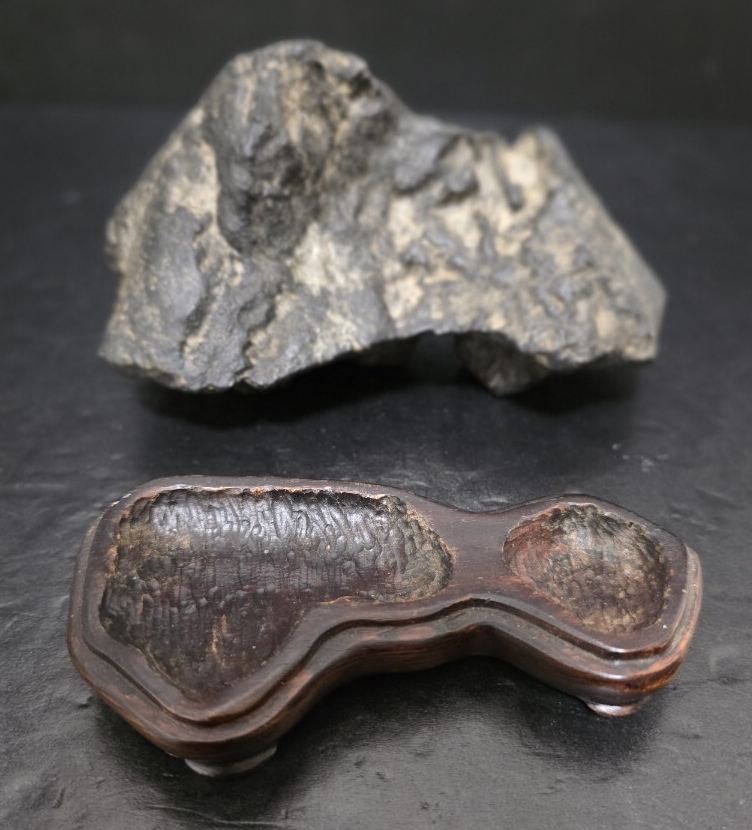 時代の良い、雰囲気最高な加茂川茅舎石になります。古い松柏文人盆栽に合わせ侘びた極上な席飾りを楽しめそうです。美しい台座付きになります。
