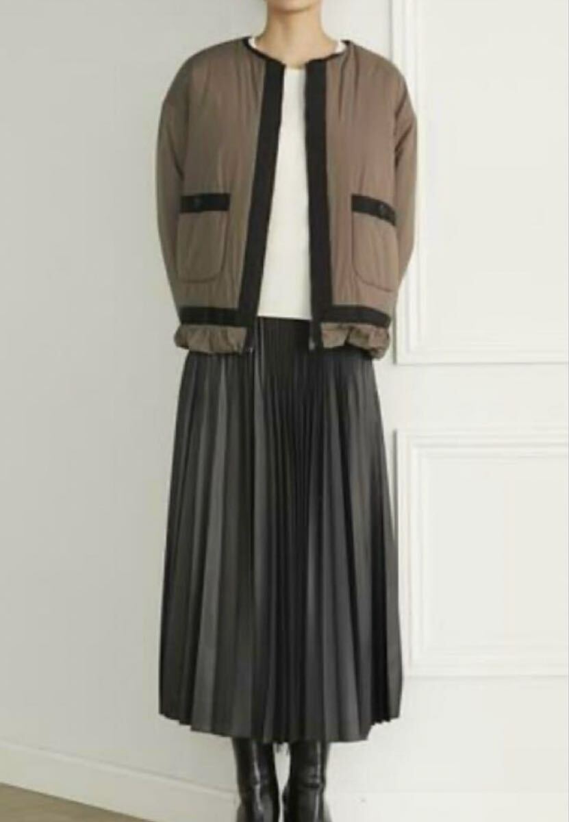 表はツイードジャケット風のクラシカルデザイン、裏は身体の丸みを活かしたギャザーシルエットとリバーシブルで着られるステッチレスのショートダウン。特殊な製法によりシート状にされたダウンは薄くて軽く、本来の暖かさを備えつつスッキリスタイリッシュに着られる新しい素材を使用しています。身体を包みこむようなリラックフォルムは表裏同様で、今シーズン注目のボリュームボトムと好バランスで合わせられる短めレングスもポイント。気分やテイストによってチェンジ出来る万能ダウンは必ずチェックしたいアイテムです。
