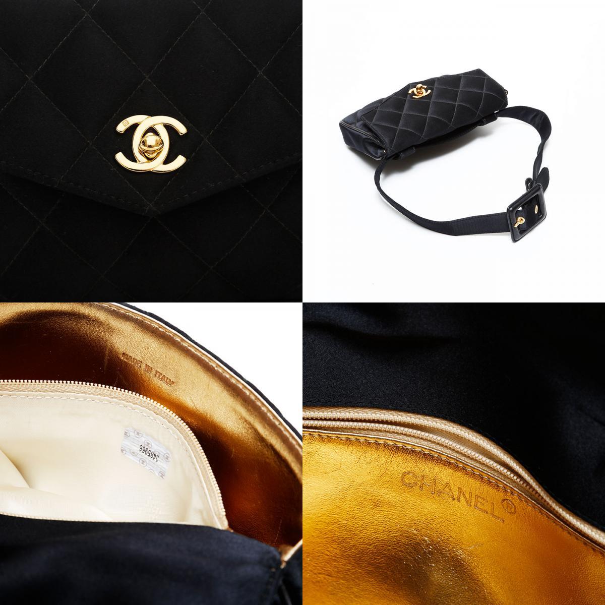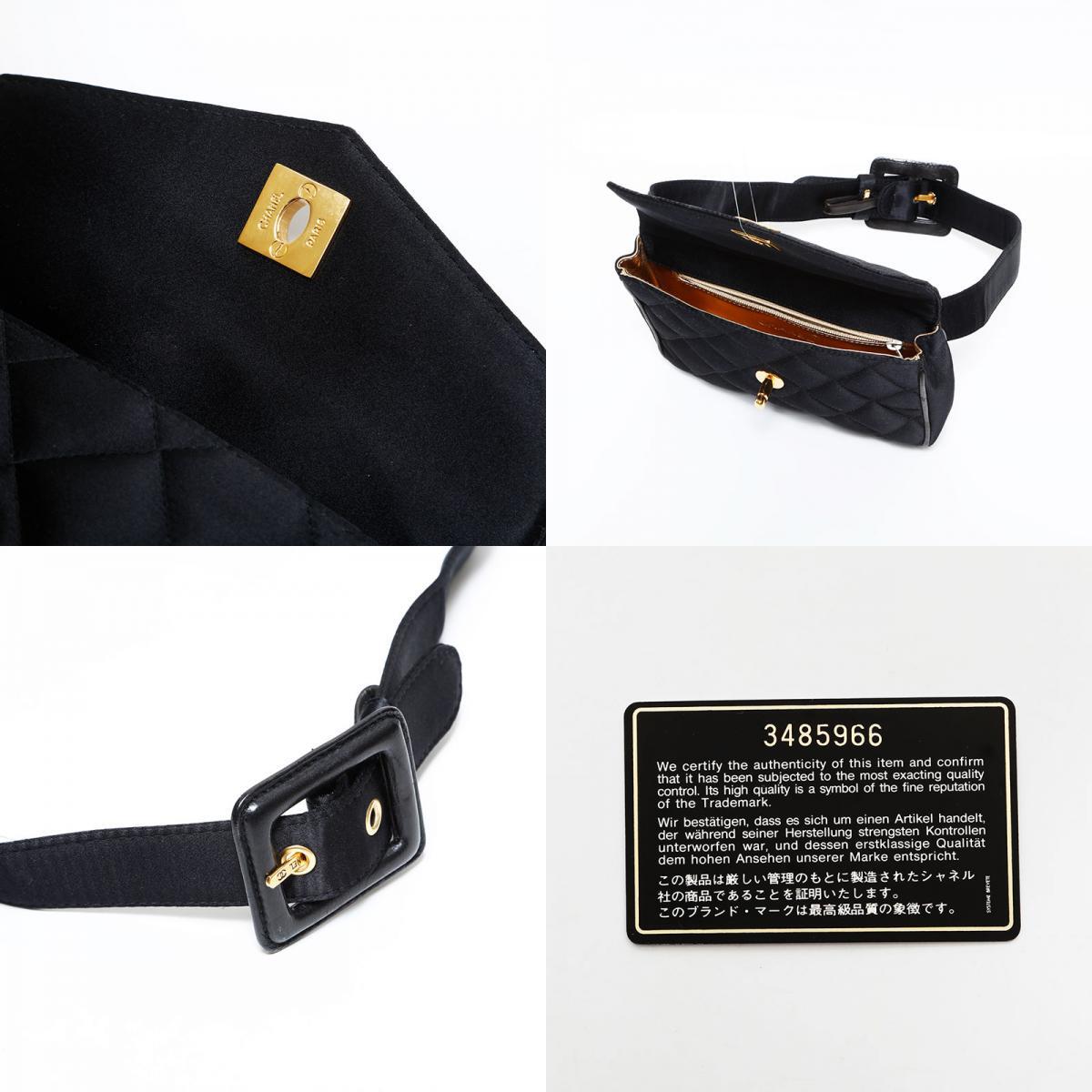 極美品 CHANEL 3番台 1994-1996 サテン マチラッセ ベルト ウエストバッグ ブラック