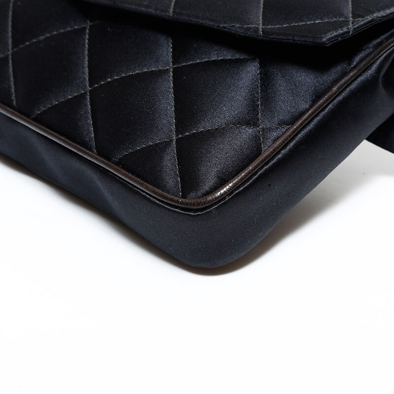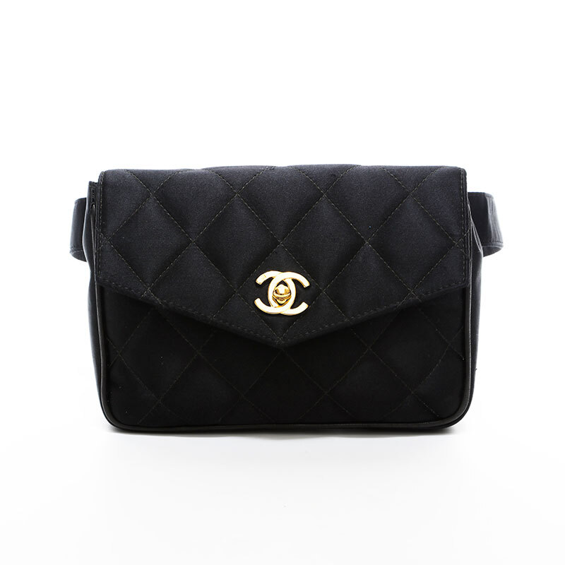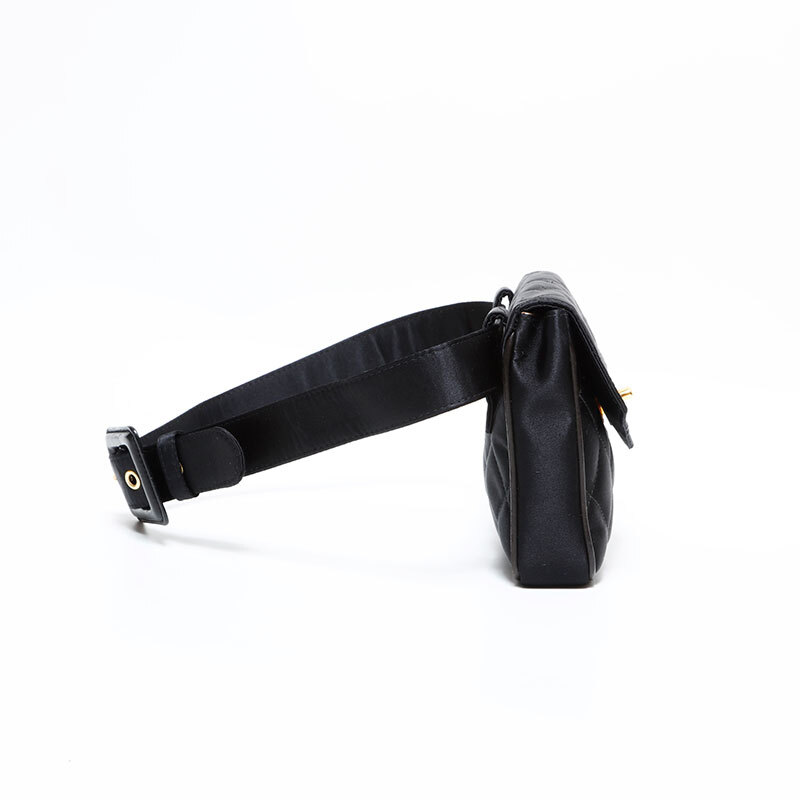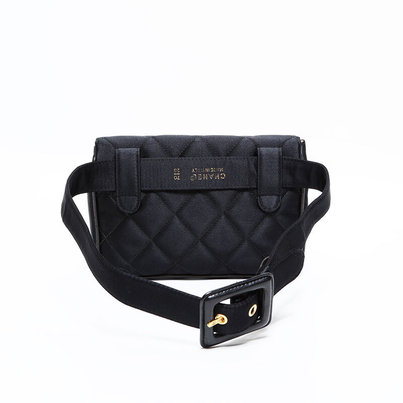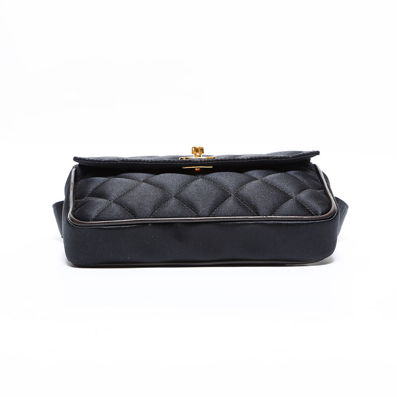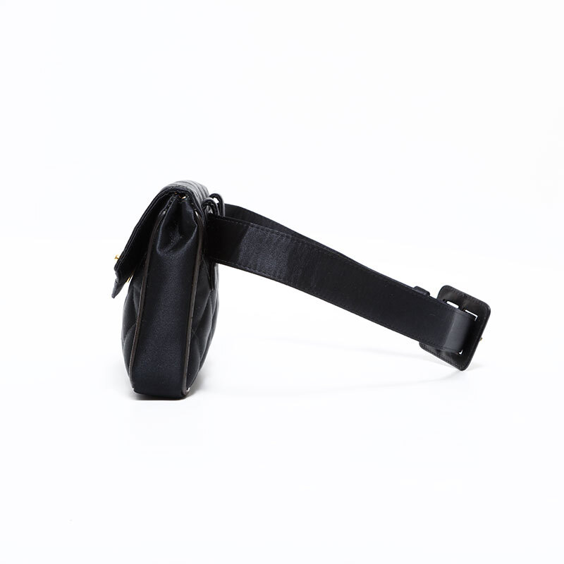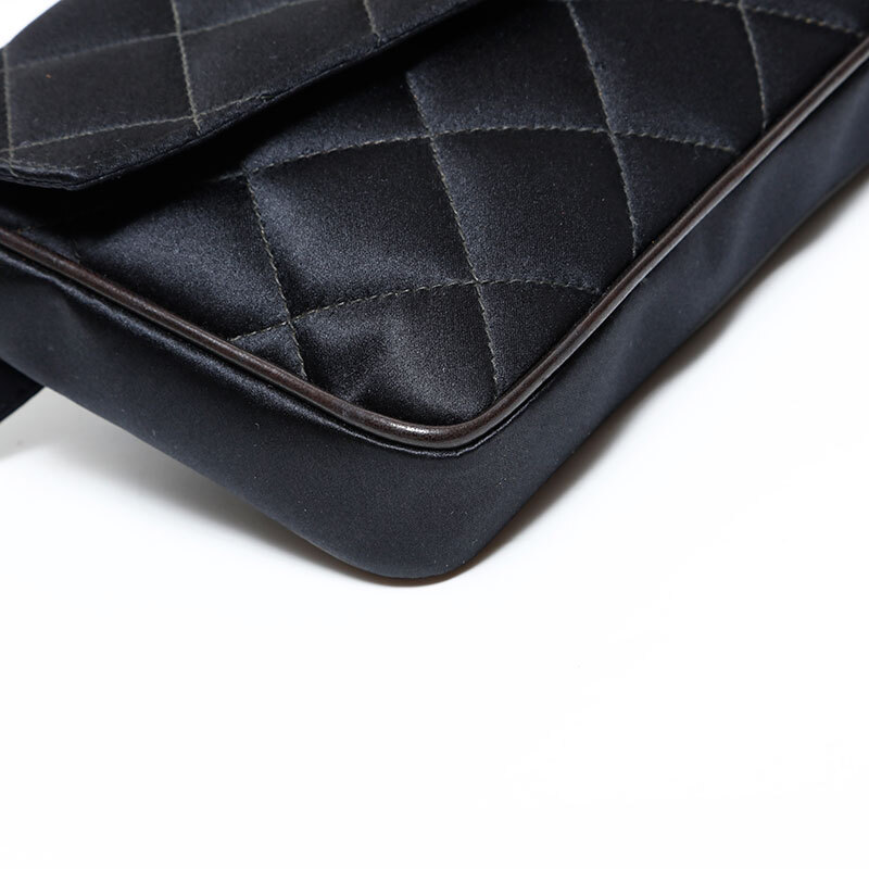 シャネル CHANEL ウエストバッグ 3番台 1994-1996 サテン マチラッセ ベルト ブラック