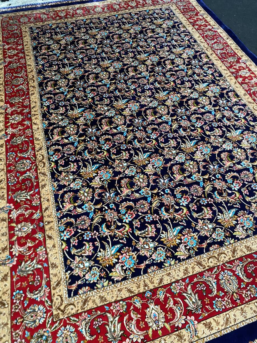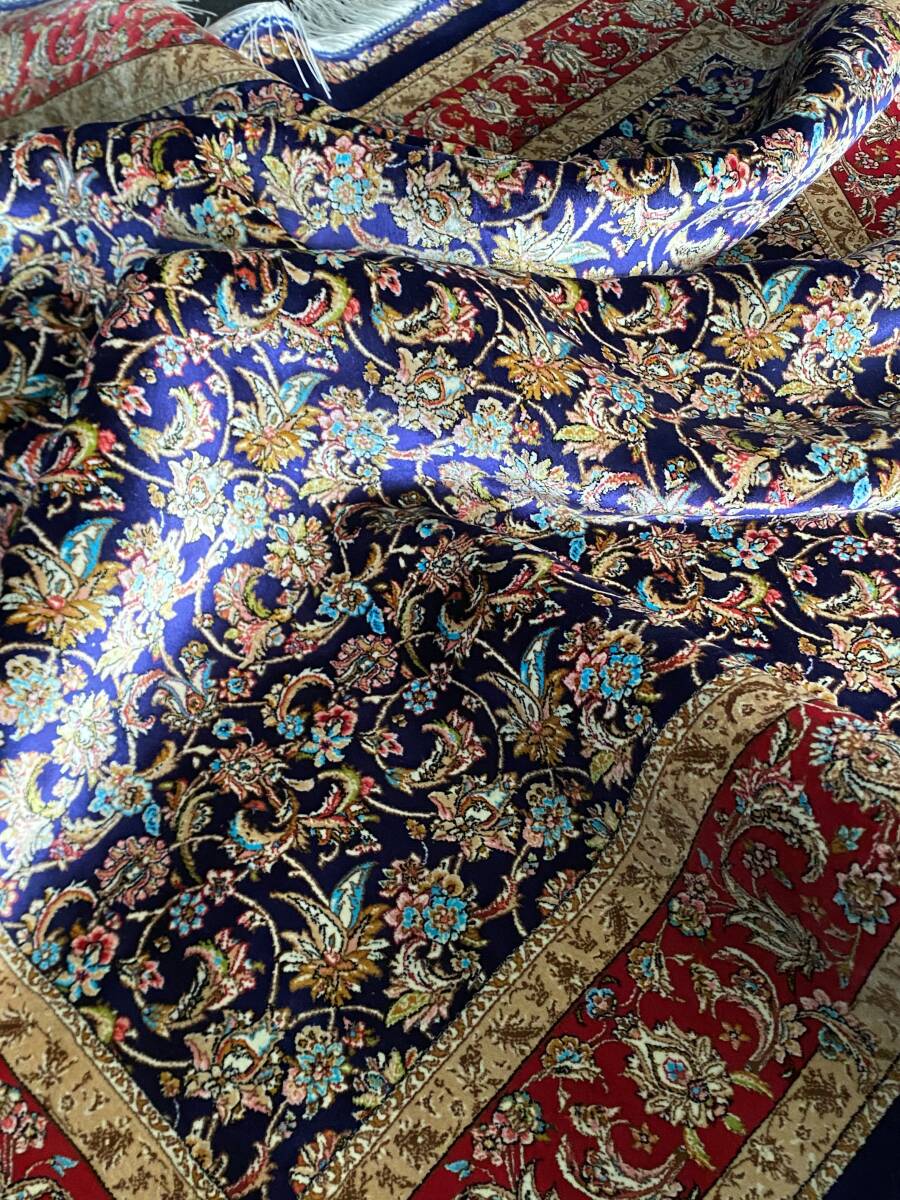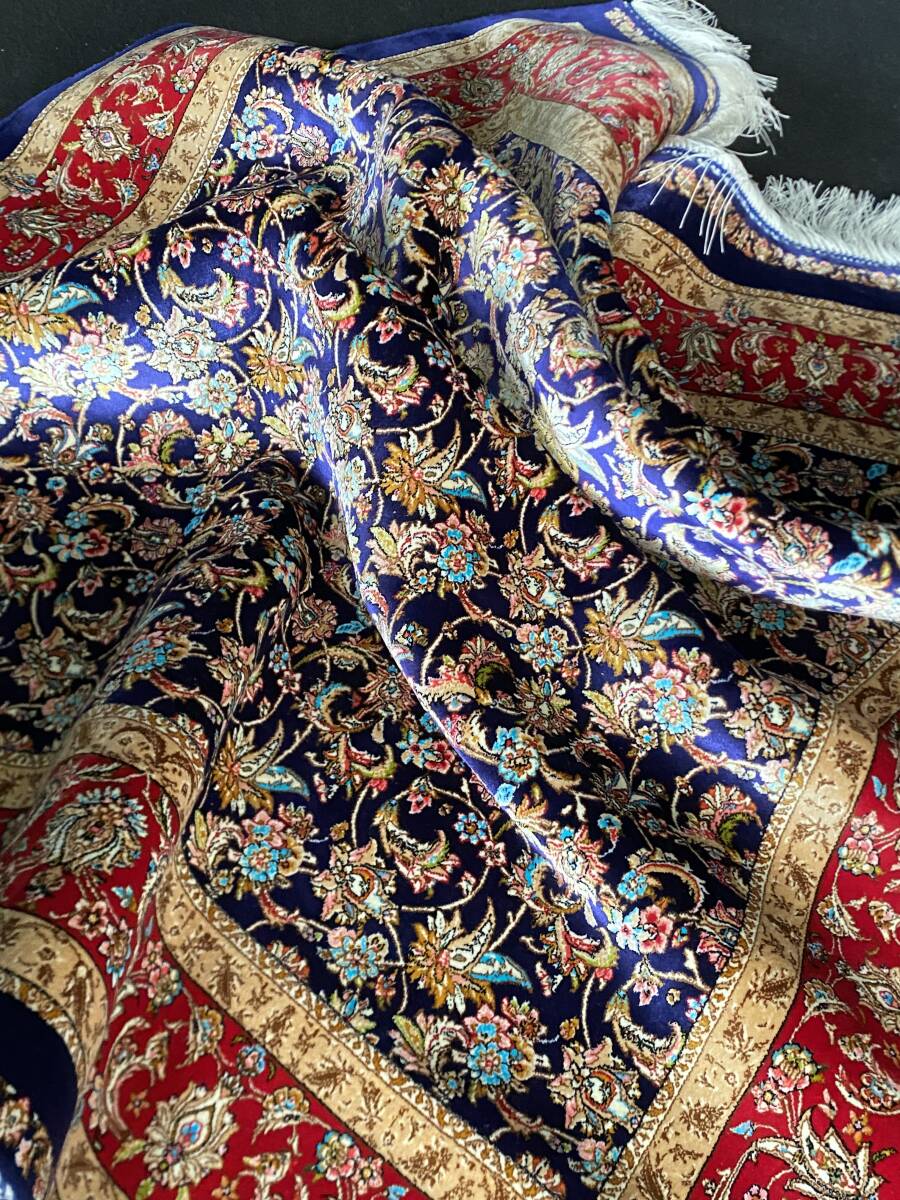 クム絨毯の歴史は1930年頃からと浅く、最初はウール絨毯を、後にシルク絨毯を織るようになりました。絹の産地としても有名なクムで、現在作られるほとんどの絨毯は100%シルク製です。