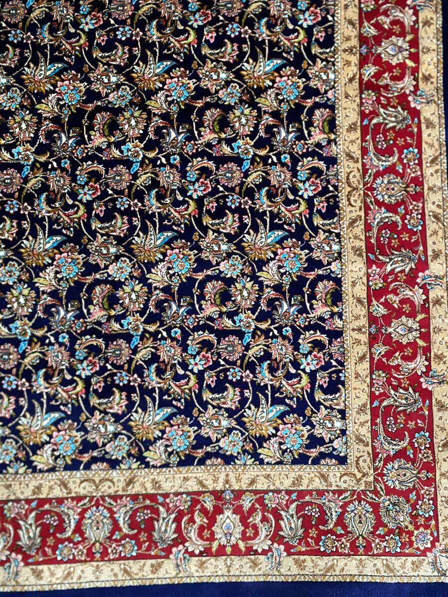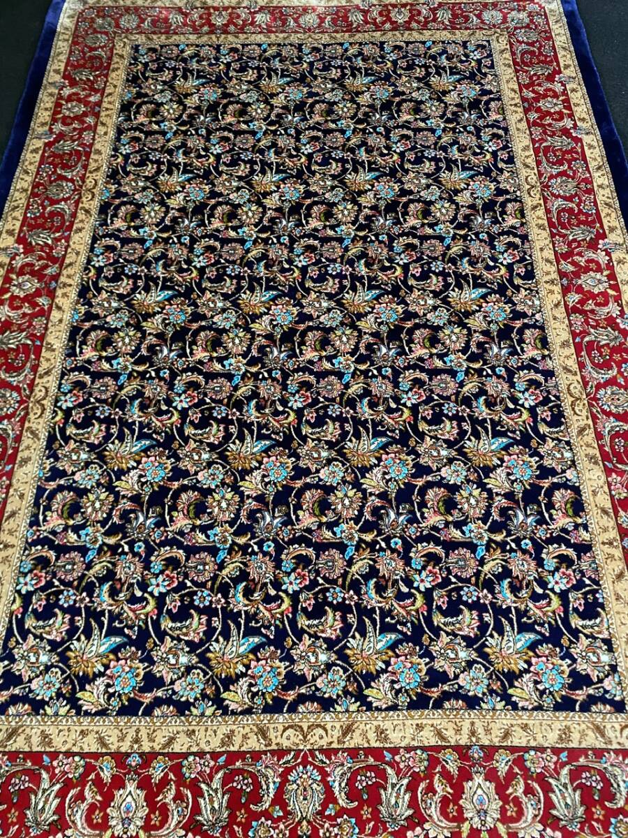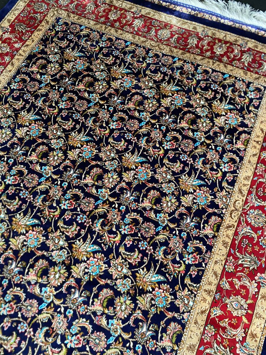 クム絨毯の歴史は1930年頃からと浅く、最初はウール絨毯を、後にシルク絨毯を織るようになりました。絹の産地としても有名なクムで、現在作られるほとんどの絨毯は100%シルク製です。
