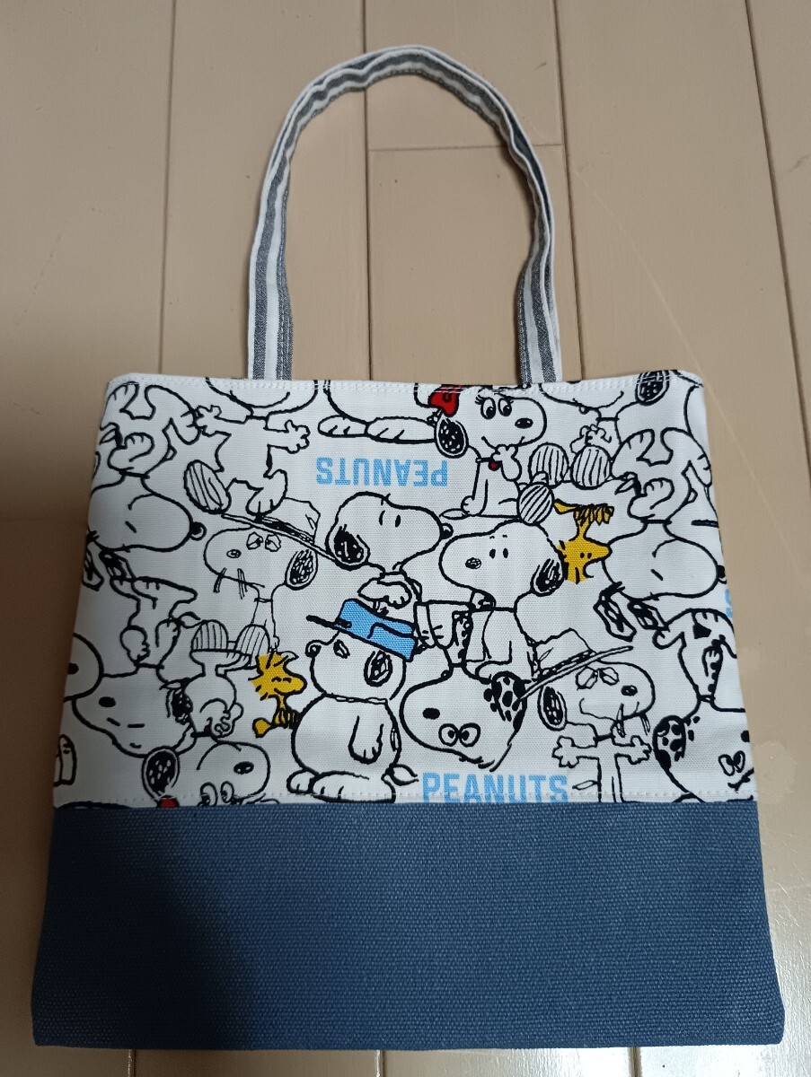 ☆ハンドメイド☆ブルー頒布生地&スヌーピー柄☆小さい バッグ☆