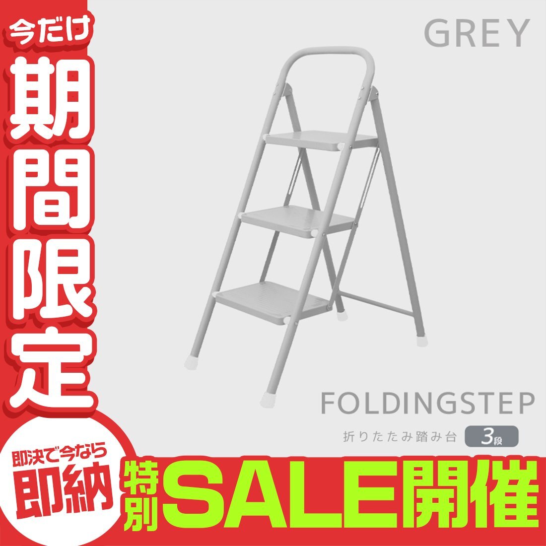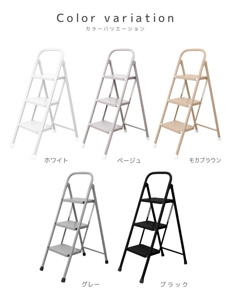 ステップ台 3段脚立 (折りたたみステップ 滑り止め加工) 耐荷重(約): 150kg 段数: 3段タイプ カラー: グレー 暮らしに馴染むやさしいカラーの折りたたみステップです。 一家に一台あると便利! 照明器具の交換や、高い位置になる棚から物を取り出すときに便利!! 耐荷重(約)150kg&ワイドステップ!安定感抜群で安心♪ また、滑り止め加工・握りやすい持ち手・脚先グリップで最上段まで簡単に上れます! お部屋や玄関に置いても邪魔にならないスリムサイズ。 折りたためばコンパクトに!手軽に持ち運びできちゃいます☆ |