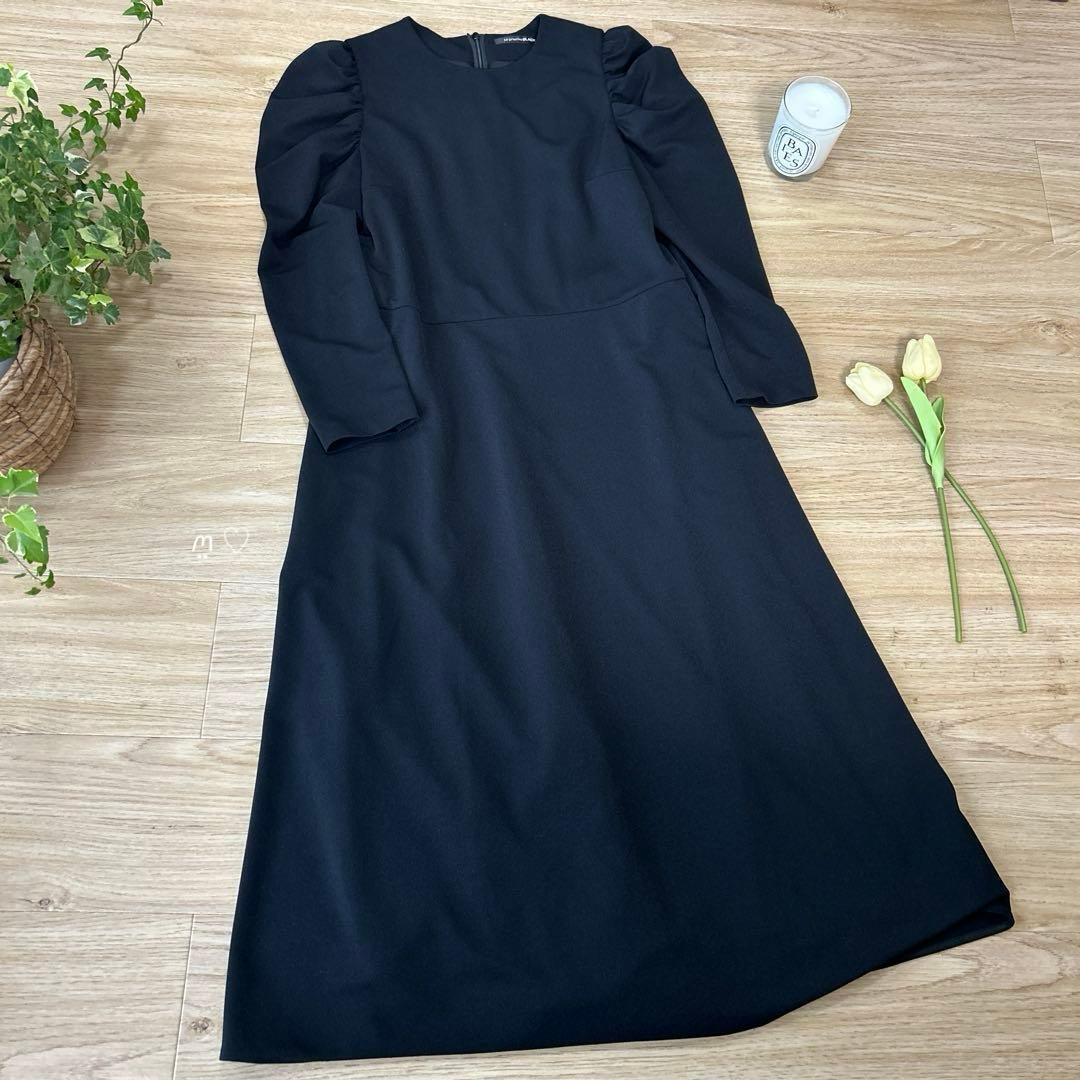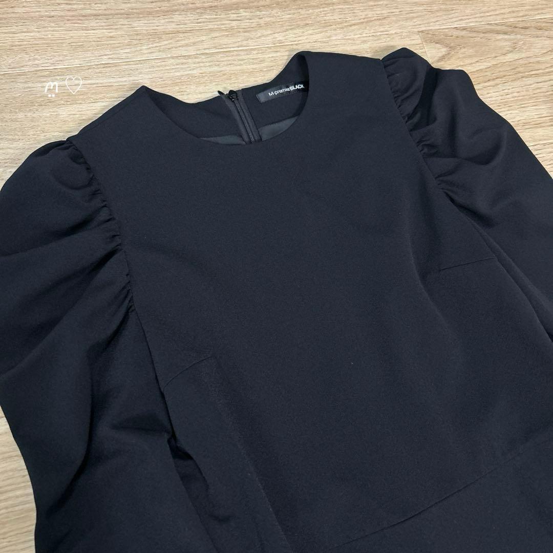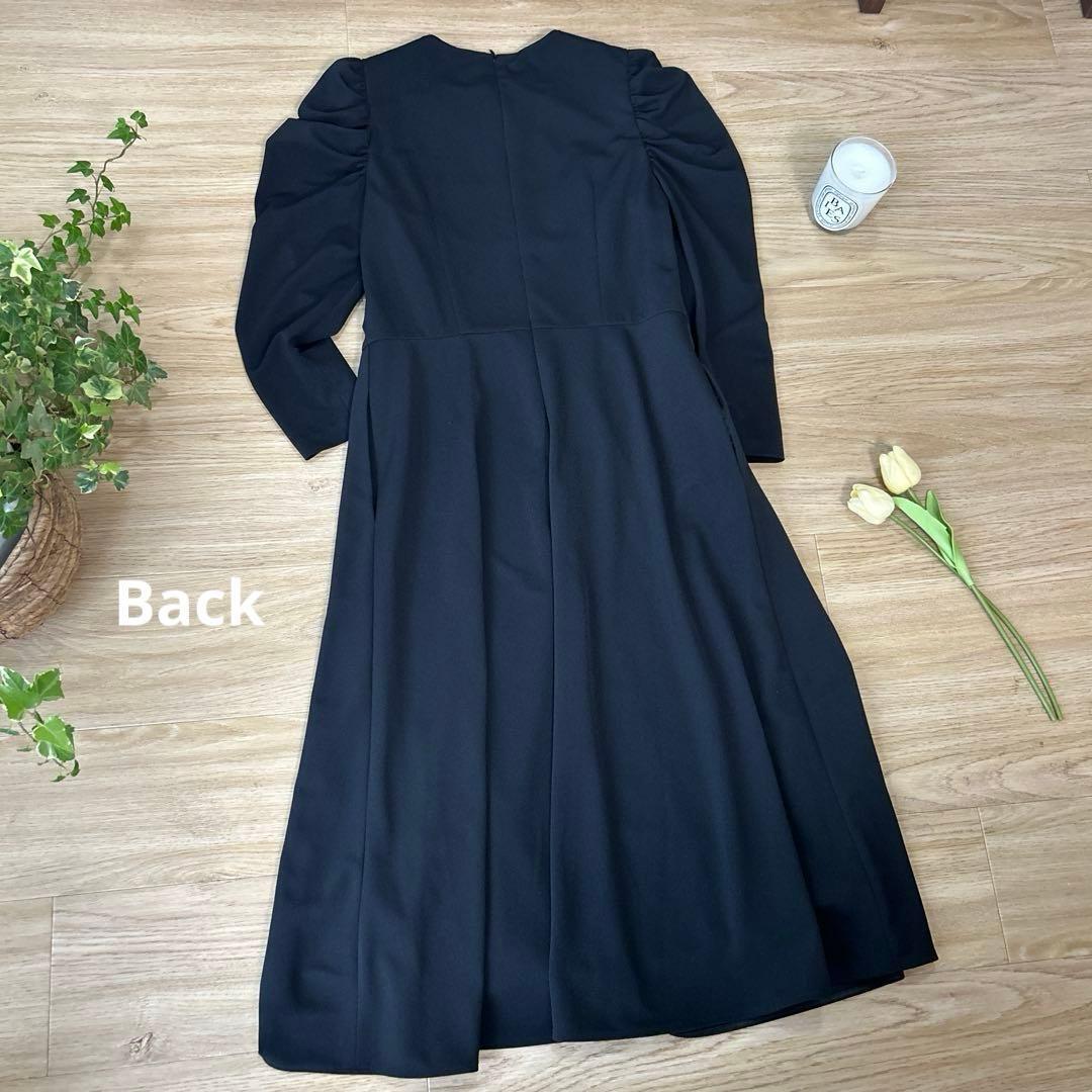 ワンピースはシンプルデザインながら、袖はパフスリーブで華やか。