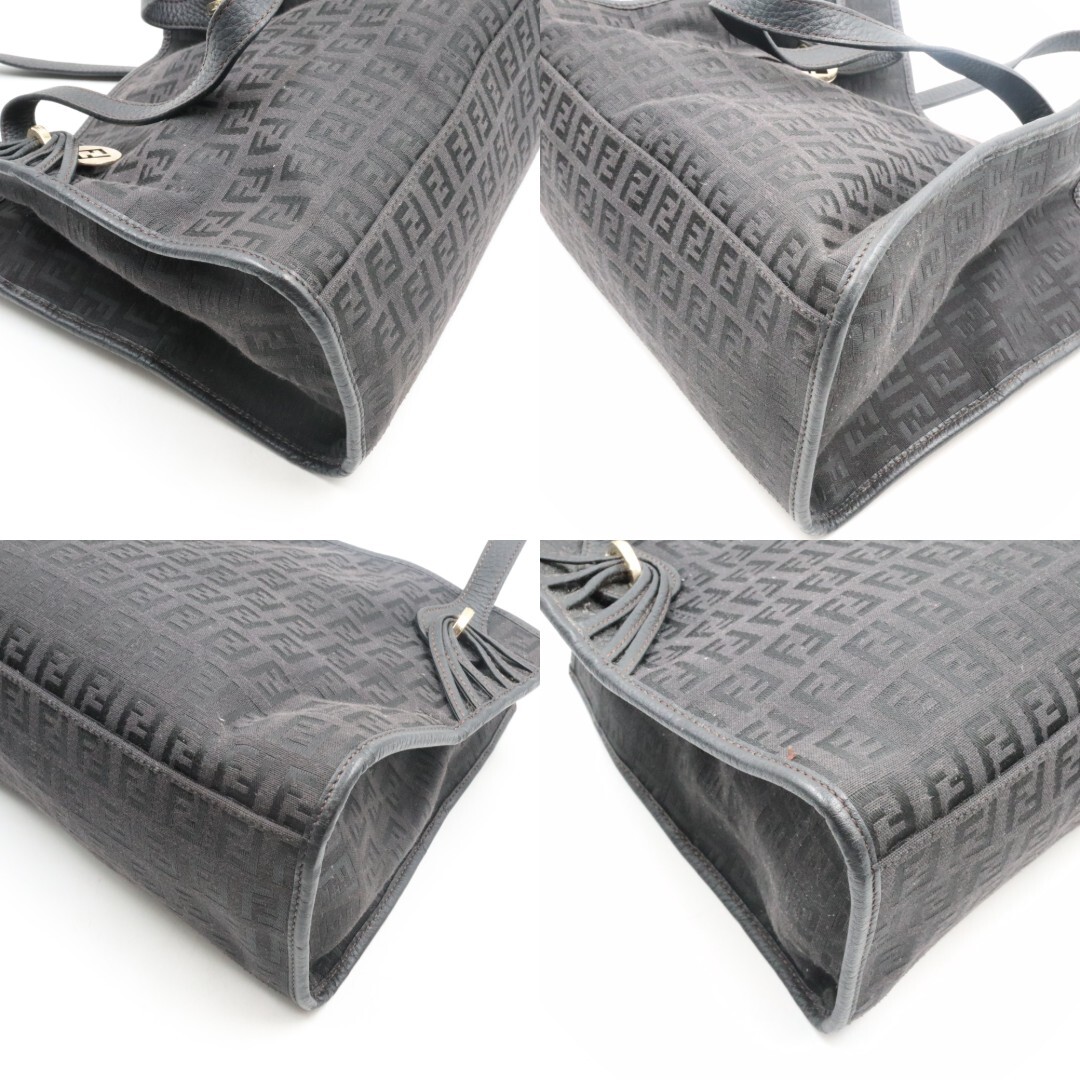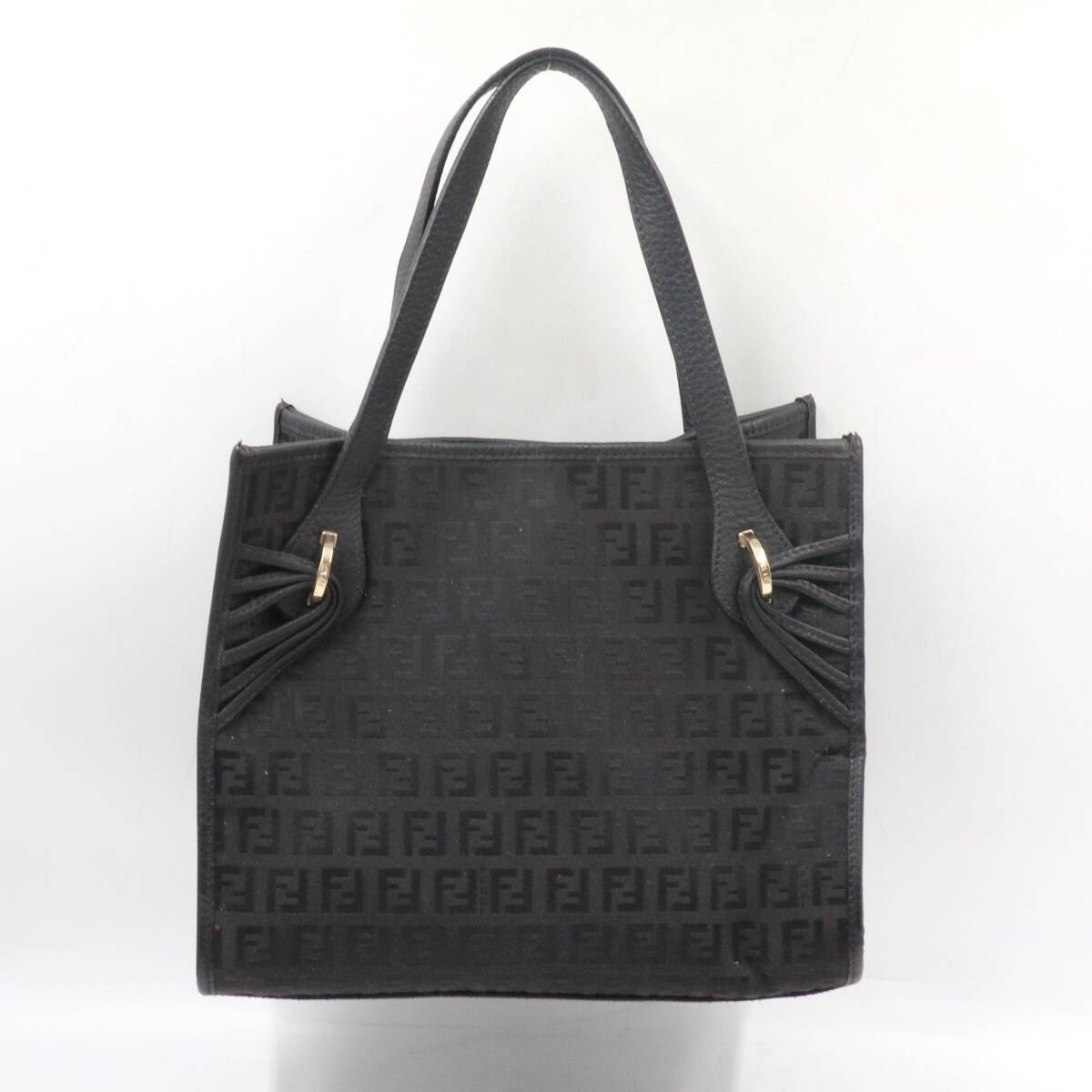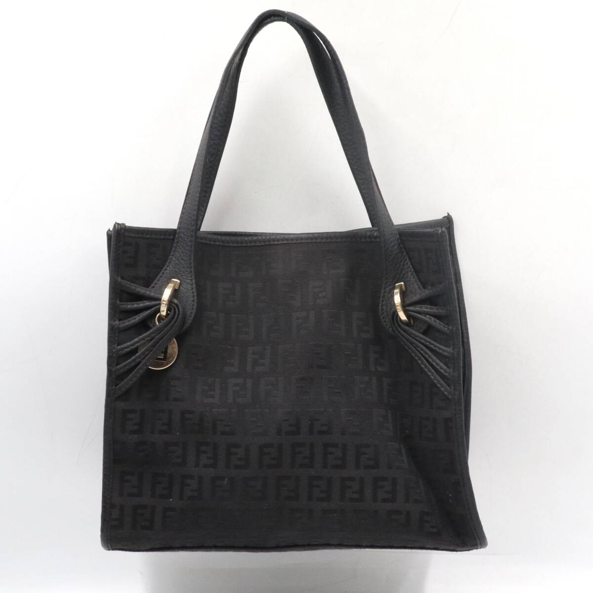 ★フェンディ FENDI トートバッグ 8BH152 ズッキーノ柄 ジャガード×レザー ブラック系
