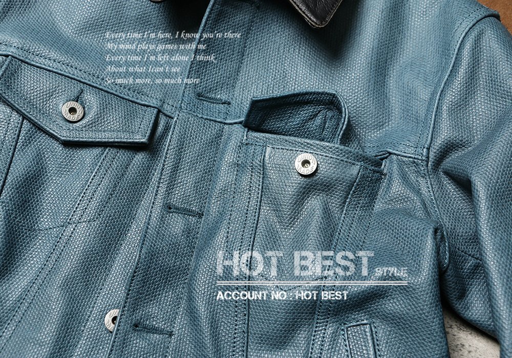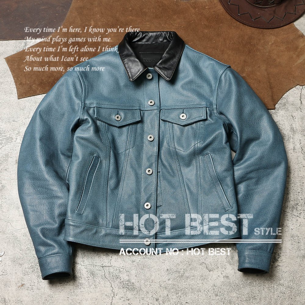 アメリカンカジュアルの象徴とも言える「セカンドタイプ(2nd Type)」Gジャンをベースに、上質なカウハイド(牛革)で仕立てた、デニム型押し仕様のレザージャケットです。