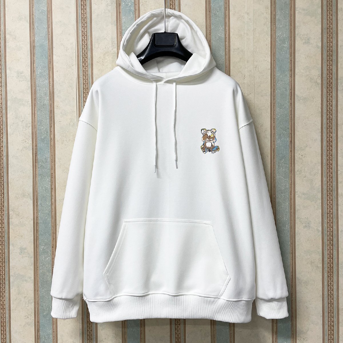 高級 定価5万 FRANKLIN MUSK・アメリカ・ニューヨーク発 パーカー 上品 頑丈 柔らかい 遊び心 クマ カットソー 男女兼用 サイズ4