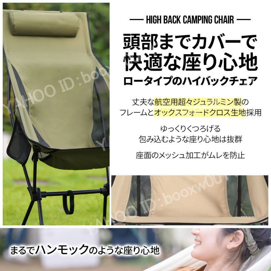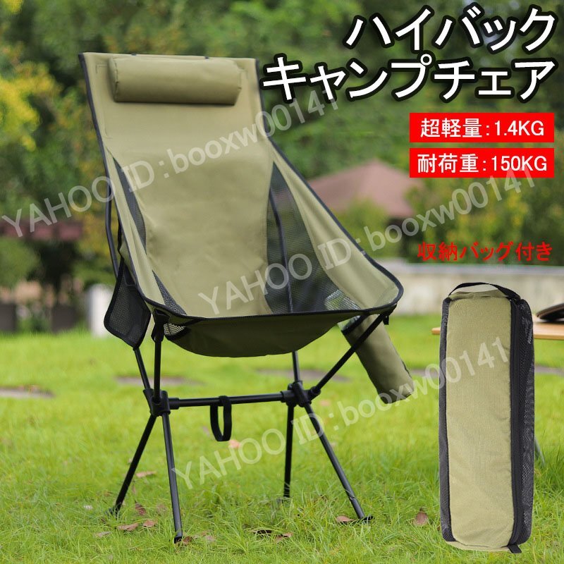 アウトドア チェア ハイバックチェア キャンプ 椅子 折りたたみ 軽量 リクライニング 背もたれ コンパクト メッシュ アルミ BBQ グリーン