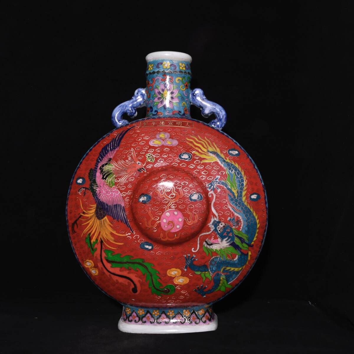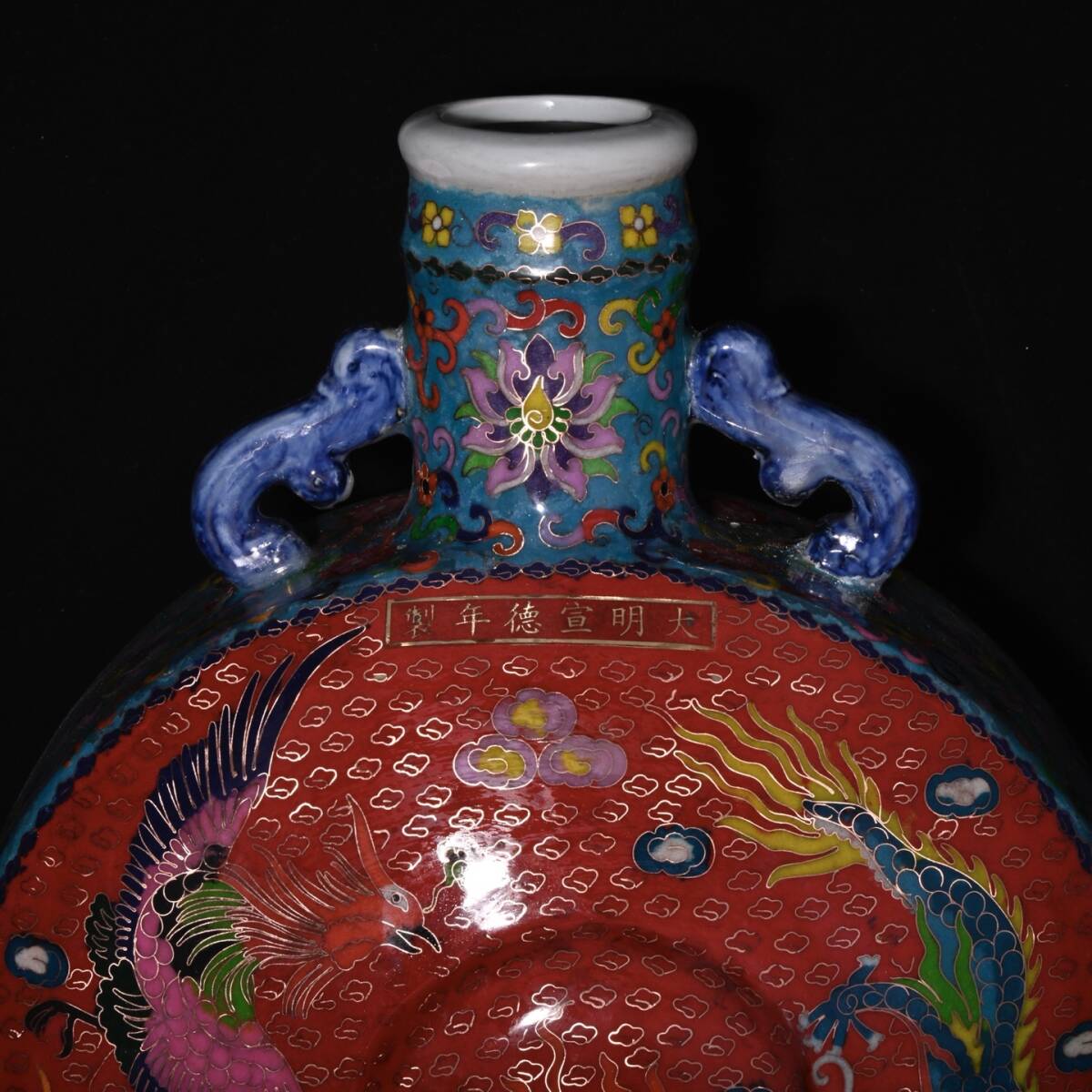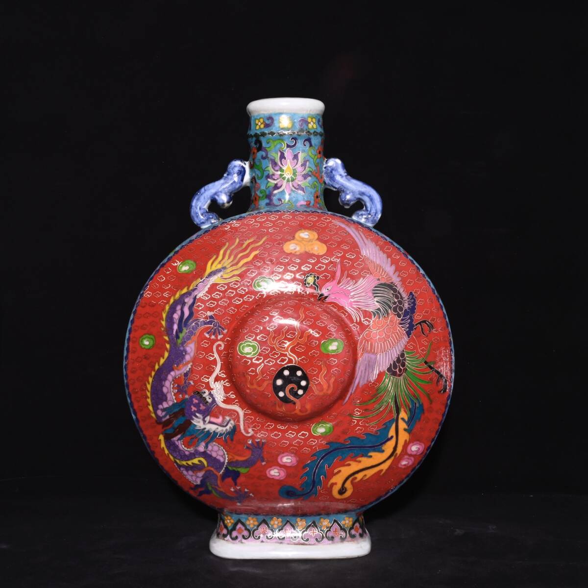 | 人間国宝 古磁器 白磁【明宣徳制琺瑯彩景泰藍摘糸龍鳳紋扁瓶】 工芸品 陶芸 磁器 置物 收藏品 時代物 中国美術 | |||