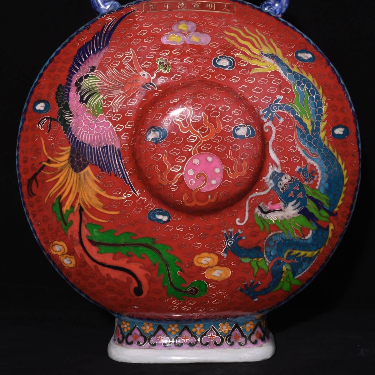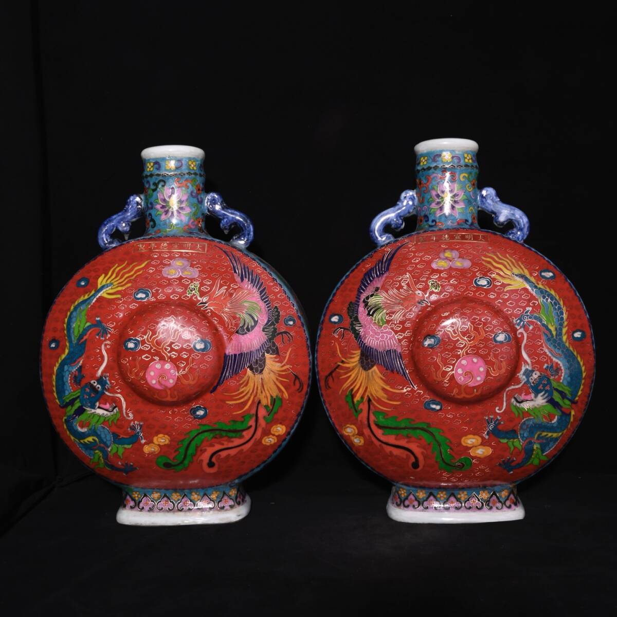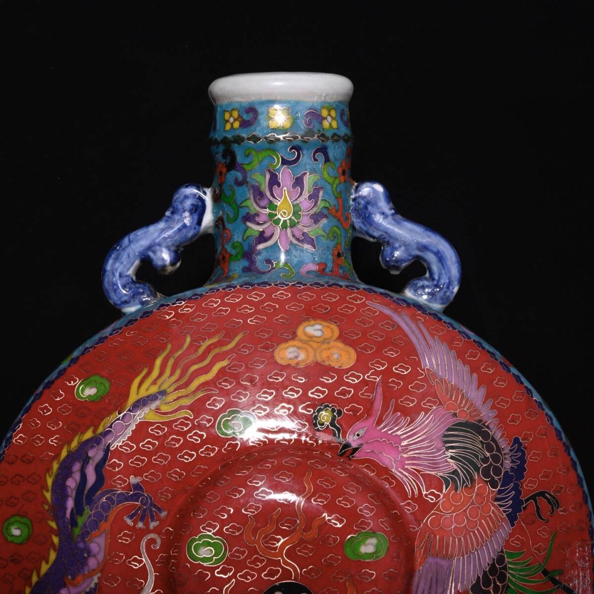 | 人間国宝 古磁器 白磁【明宣徳制琺瑯彩景泰藍摘糸龍鳳紋扁瓶】 工芸品 陶芸 磁器 置物 收藏品 時代物 中国美術 | |||