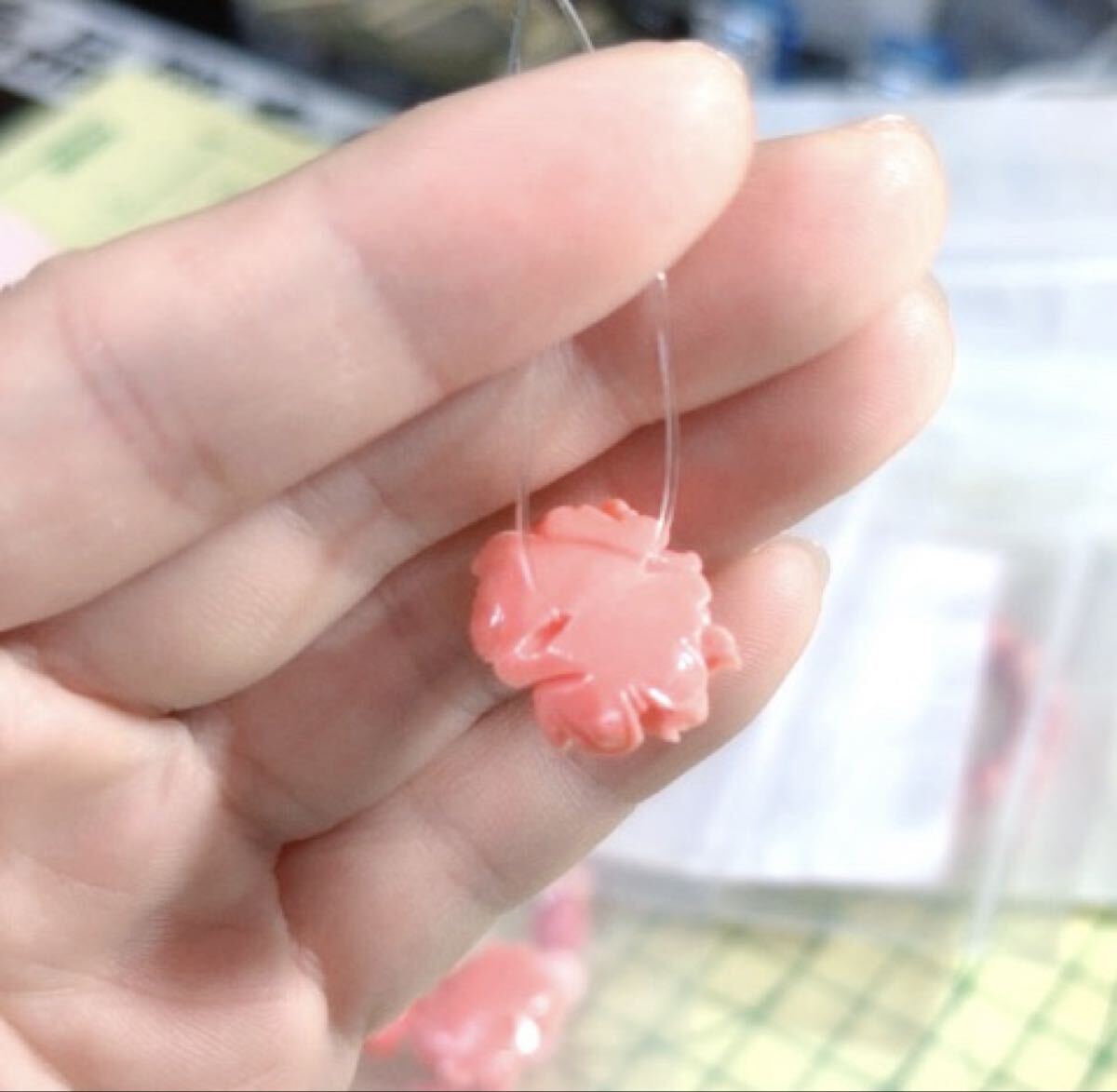 コンク貝から作られ、ピンクのグラデーションが可愛らしく、古くからジュエリーや芸術作品の素材として珍重されていたそうです。